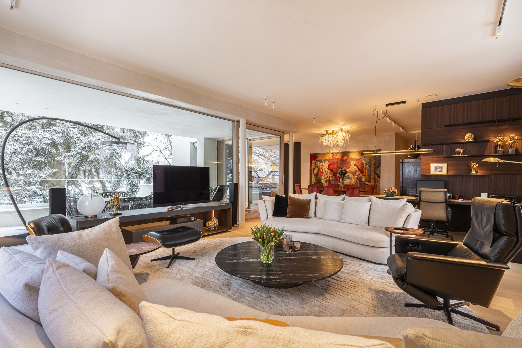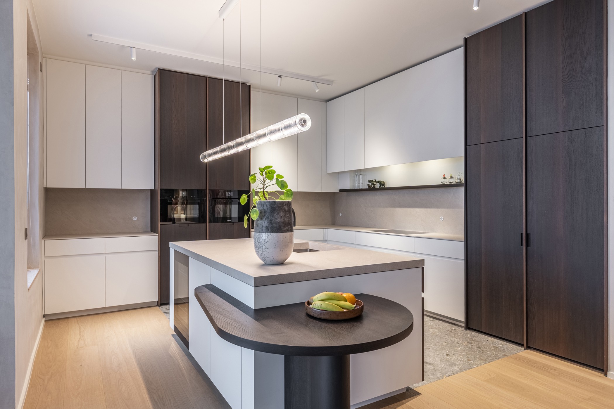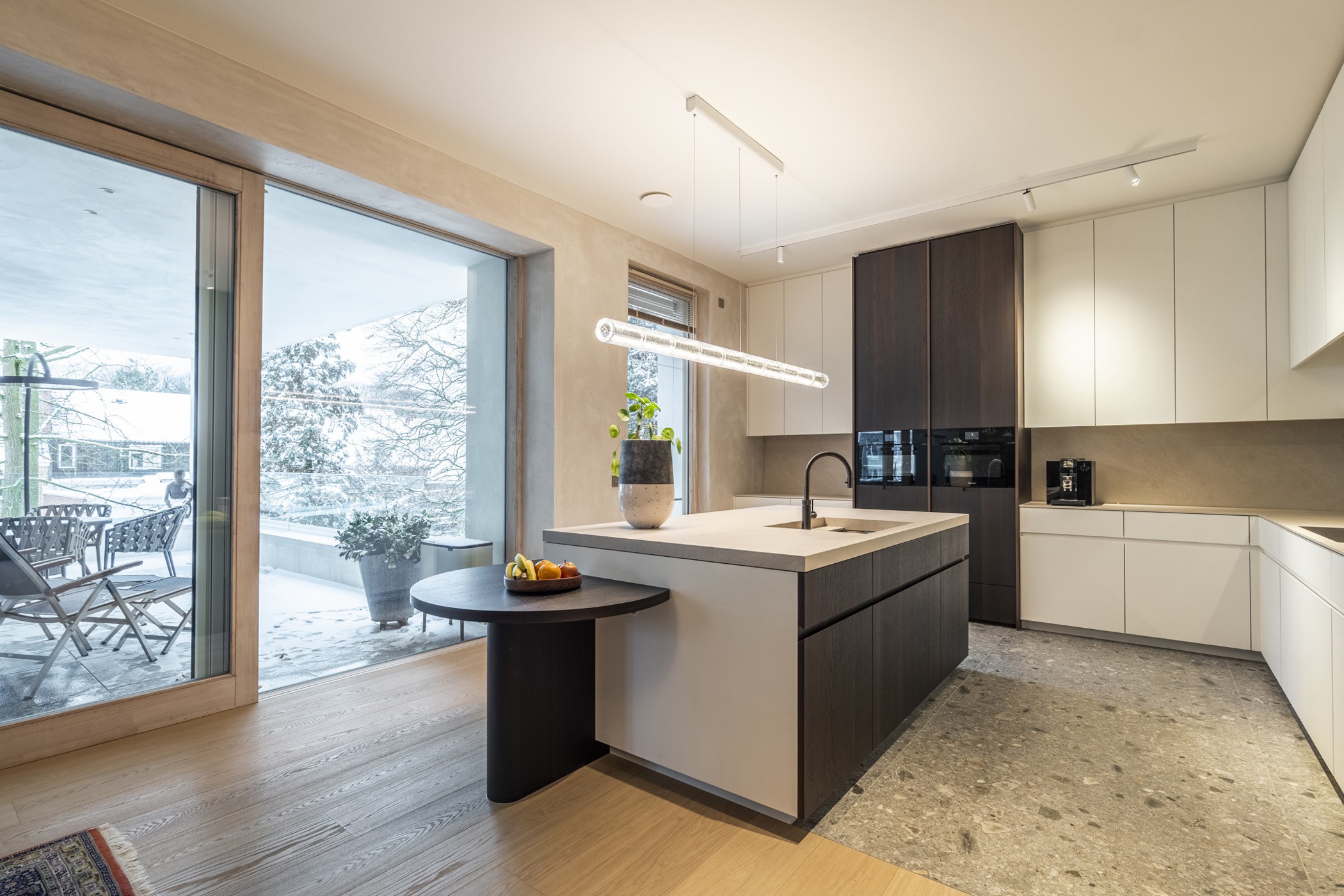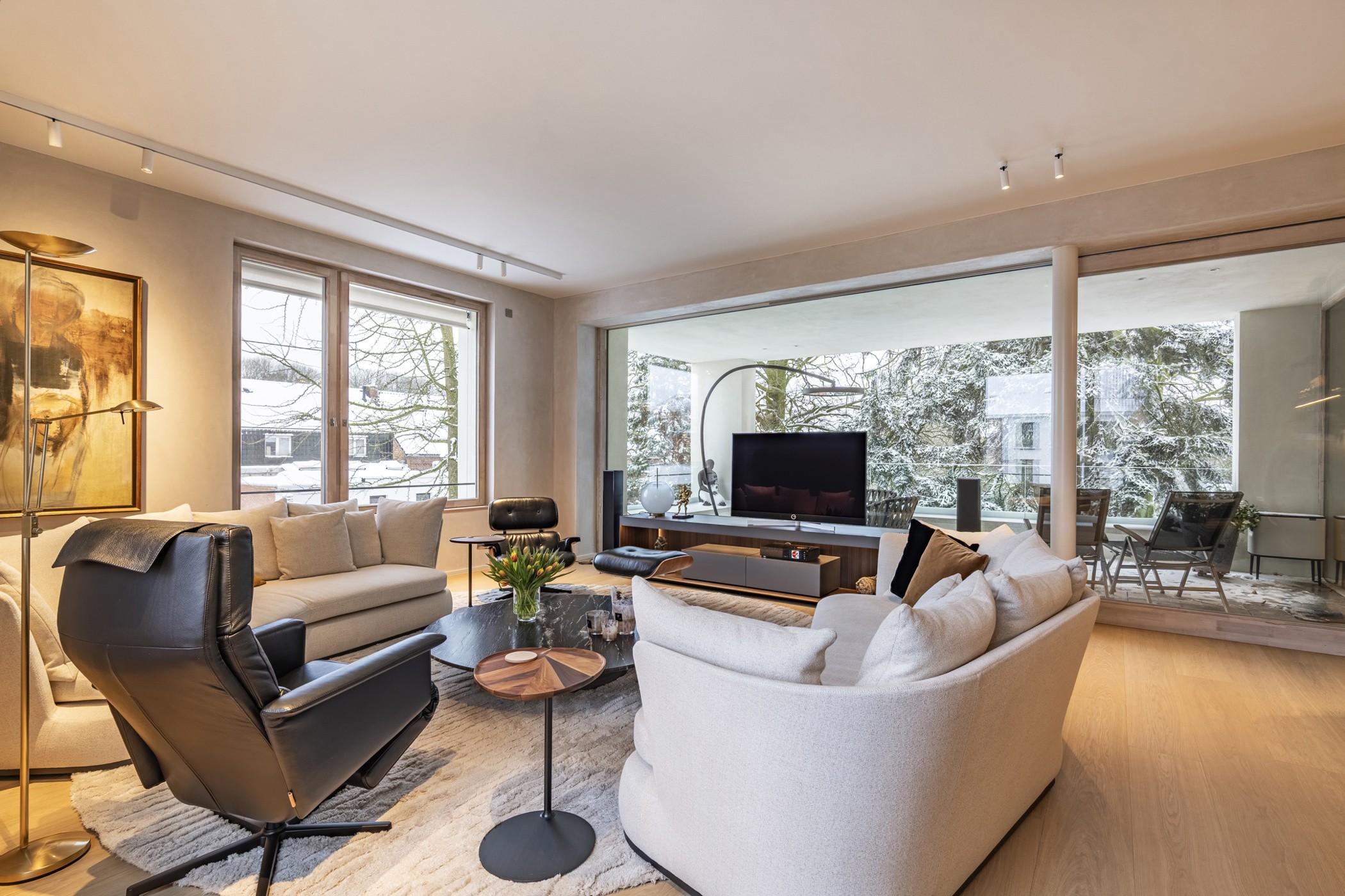 Binnen geniet u van een ongekend ruimtelijk gevoel, dankzij plafondhoogtes van meer dan 3 meter en leefruimtes met raampartijen langs 3 zijden.