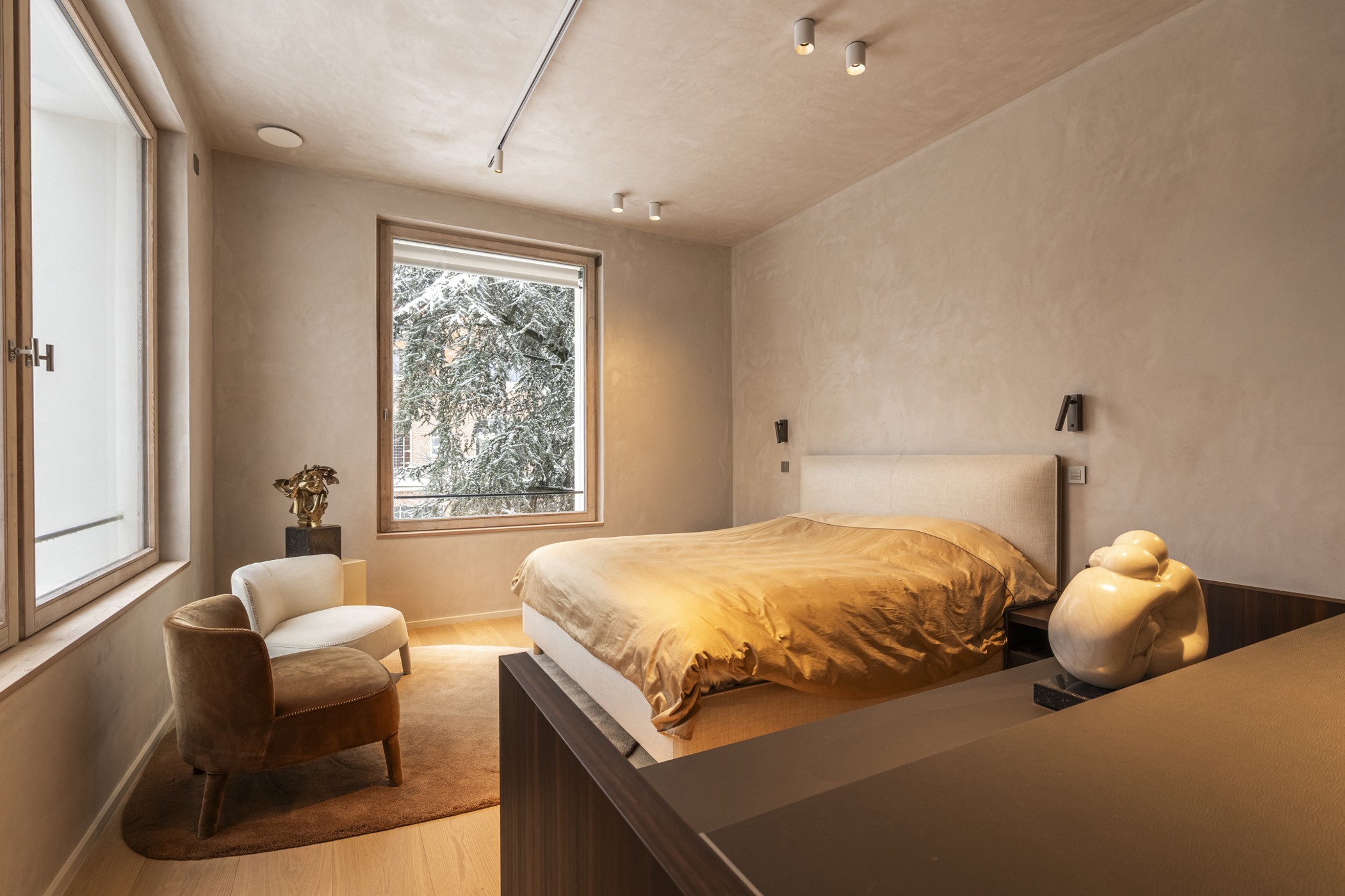 De villa-appartementen, verdeeld over 4 verdiepingen, bieden woonoppervlaktes van 216 m² tot wel 231m², telkens met royale terrassen op het zuiden en westen. Deze ideale oriëntaties, absolute privacy en het zicht op de parkachtige tuin maken van elk appartement een oase van rust. Deze tuin is ommuurd en werd onder architectuur aangelegd, met behoud van de monumentale bomen die het geheel een uniek karakter geven.