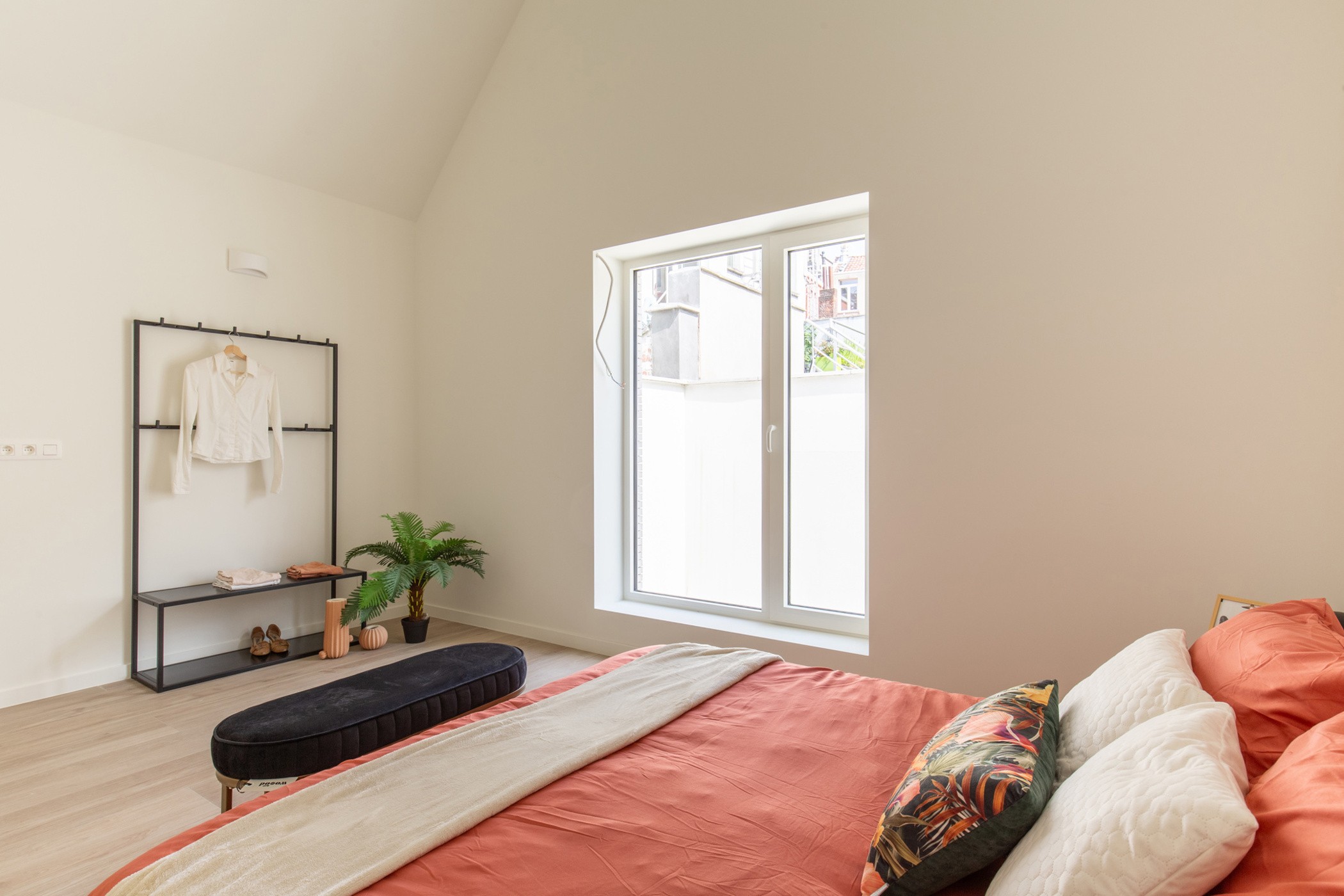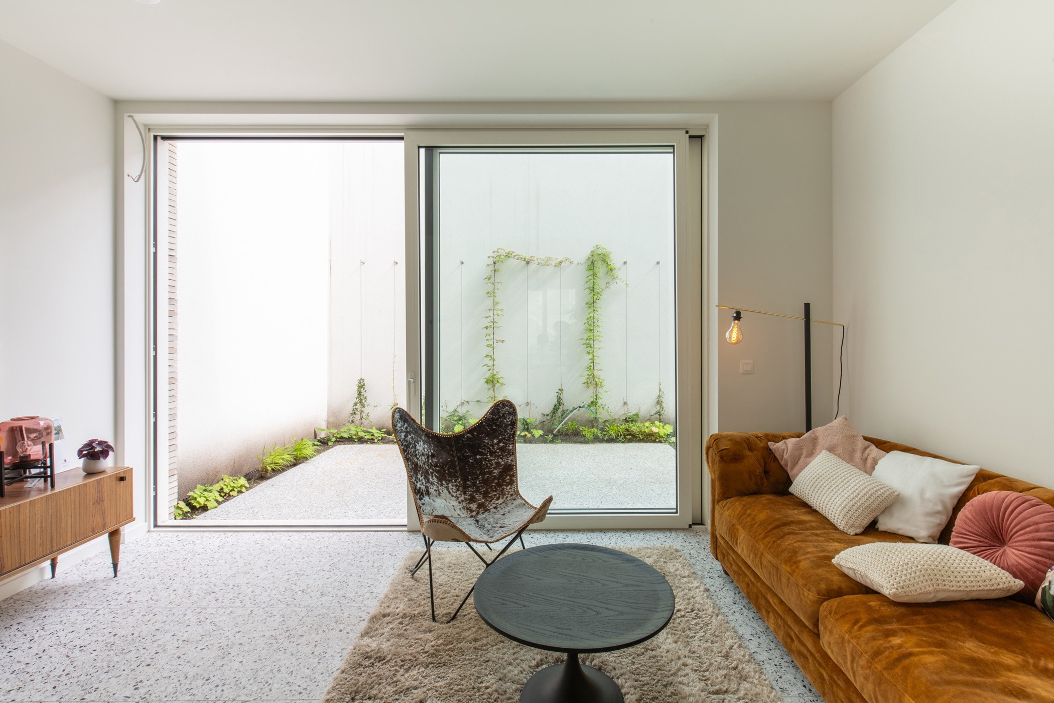 - Lichte leefruimte met zicht op de tweede en tevens privatieve tuin / terras van ca. 17 m²