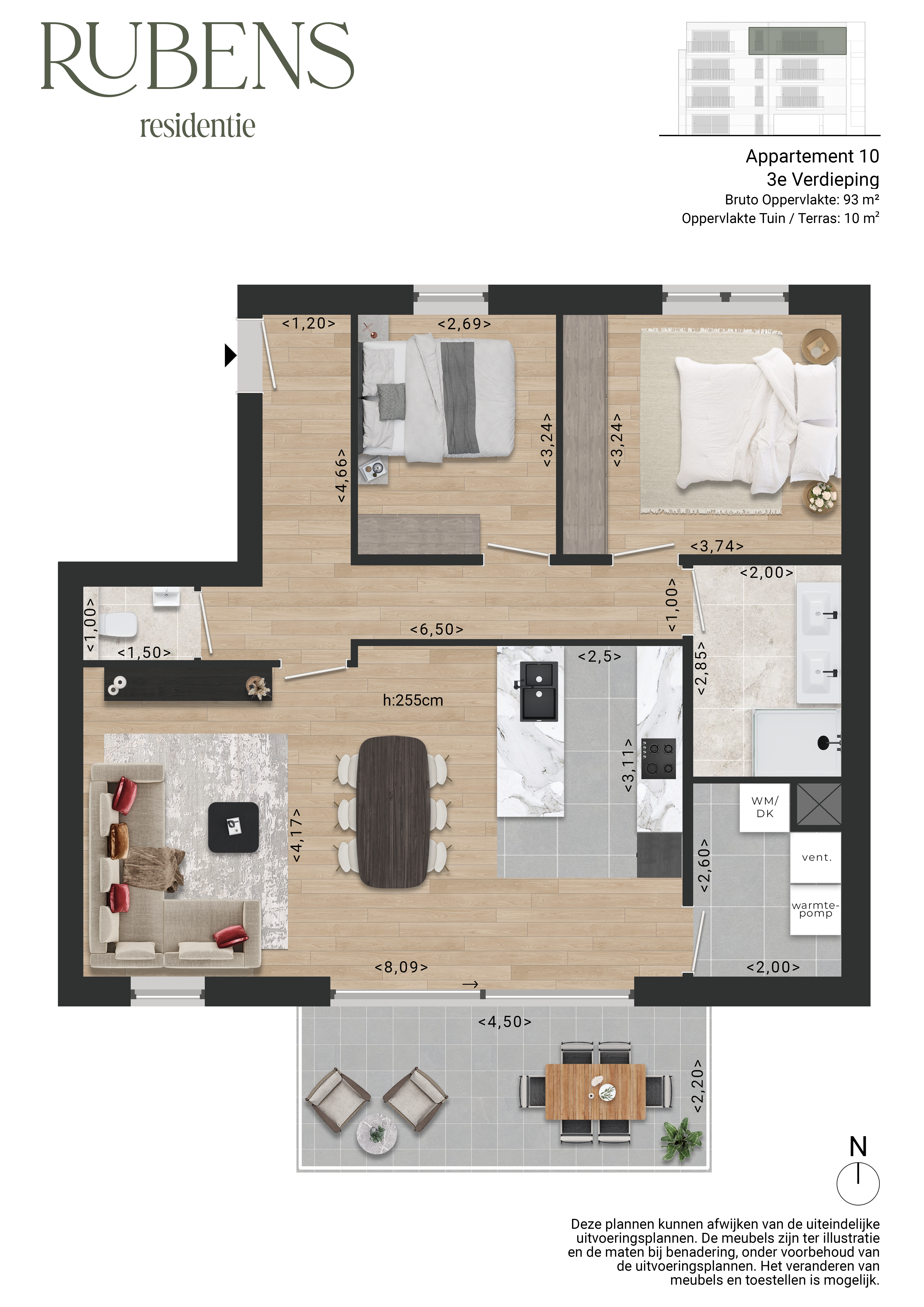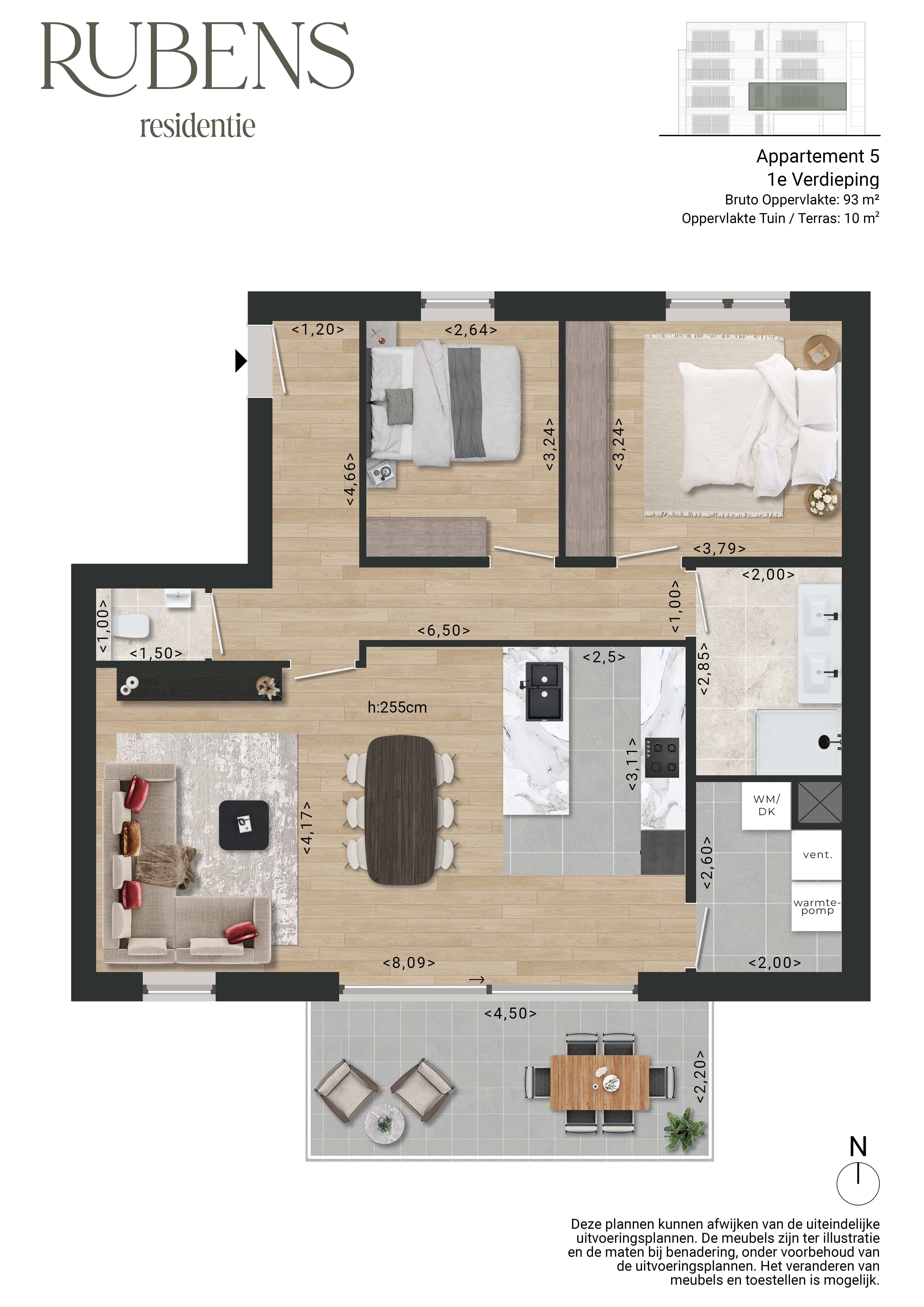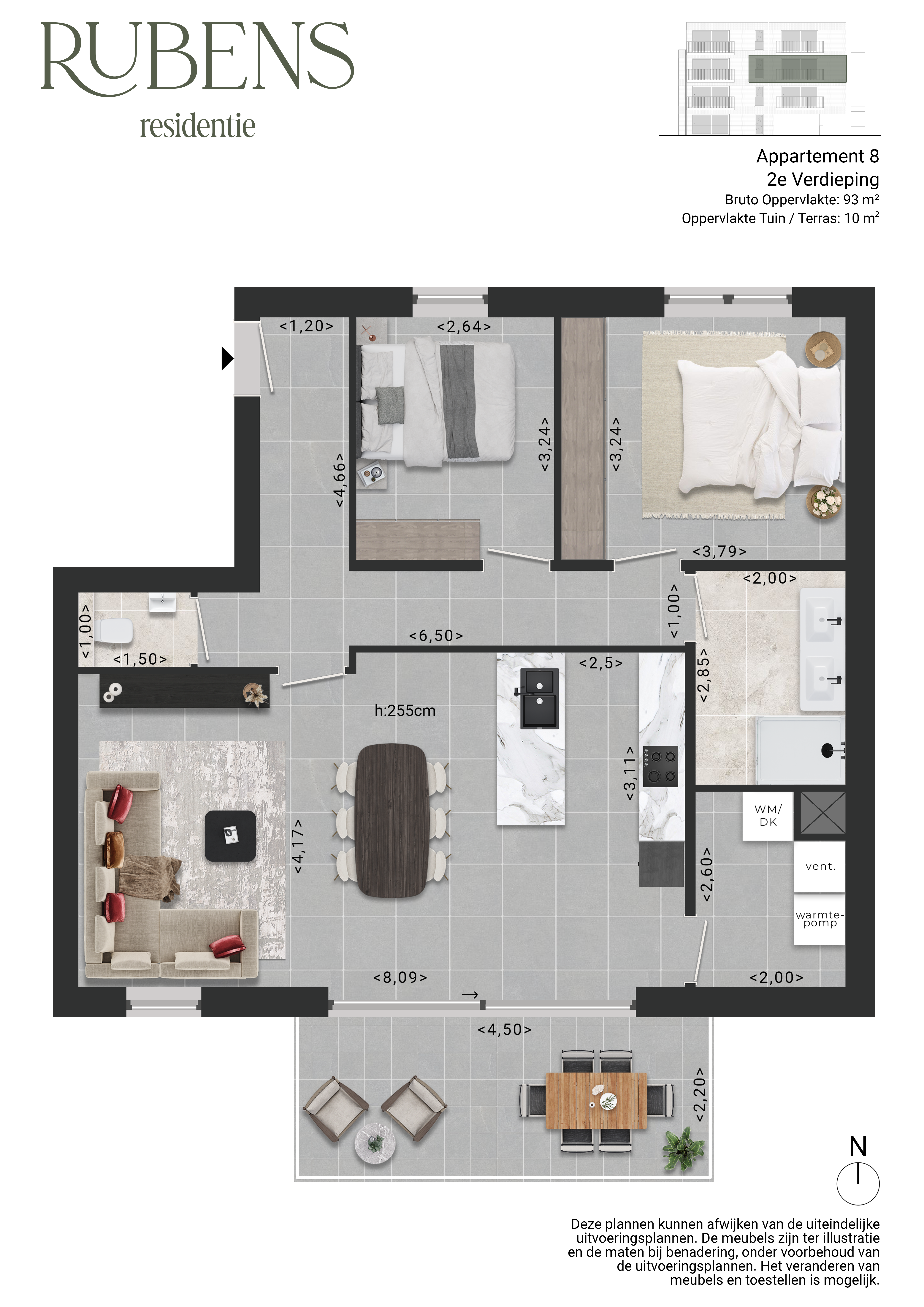 Residentie Rubens bestaat uit 10 ruime appartementen met oppervlaktes van 93m² tot 138m². Elk appartement biedt daarbij plaats aan 2 volwaardige slaapkamers, een lichte leefruimte met open keuken en heerlijke terrassen met de ideale zonoriëntaties en oppervlaktes tot 17m². De 2 gelijkvloerse appartementen hebben bovendien een eigen, aangelegde tuin.