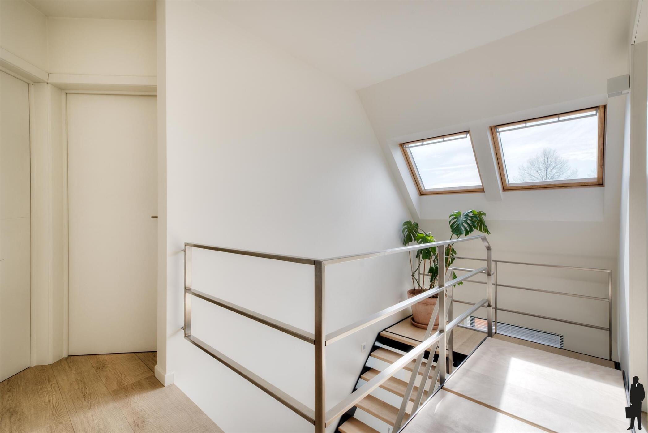 Via de trap komt u in een verrassend ruime woonkamer op parkettegel waar u van veel daglicht geniet. De woonkamer beschikt over een open keuken voorzien van alle nodige kwaliteitstoestellen (Miele). Verder is er op deze verdieping nog een ruime, praktische berging aanwezig met aansluitingen voor wasmachine en droogkast.