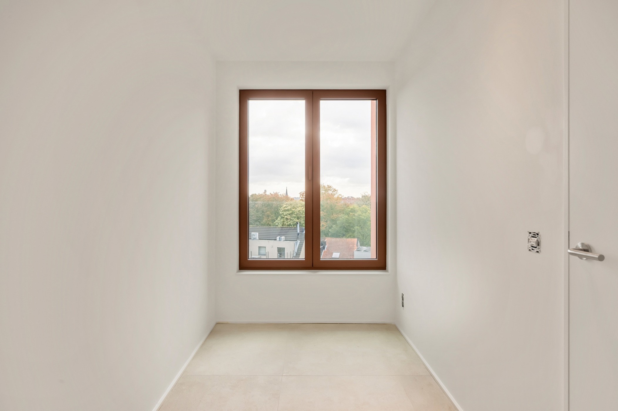 In een recent opgeleverd nieuwbouwproject op de Belgiëlei bevindt zich dit energiezuinige duplexappartement met een stijlvolle afwerking en een ruime, lichte indeling. Dankzij de grote raampartijen geniet de leefruimte van veel natuurlijk licht en een aangenaam, open gevoel.