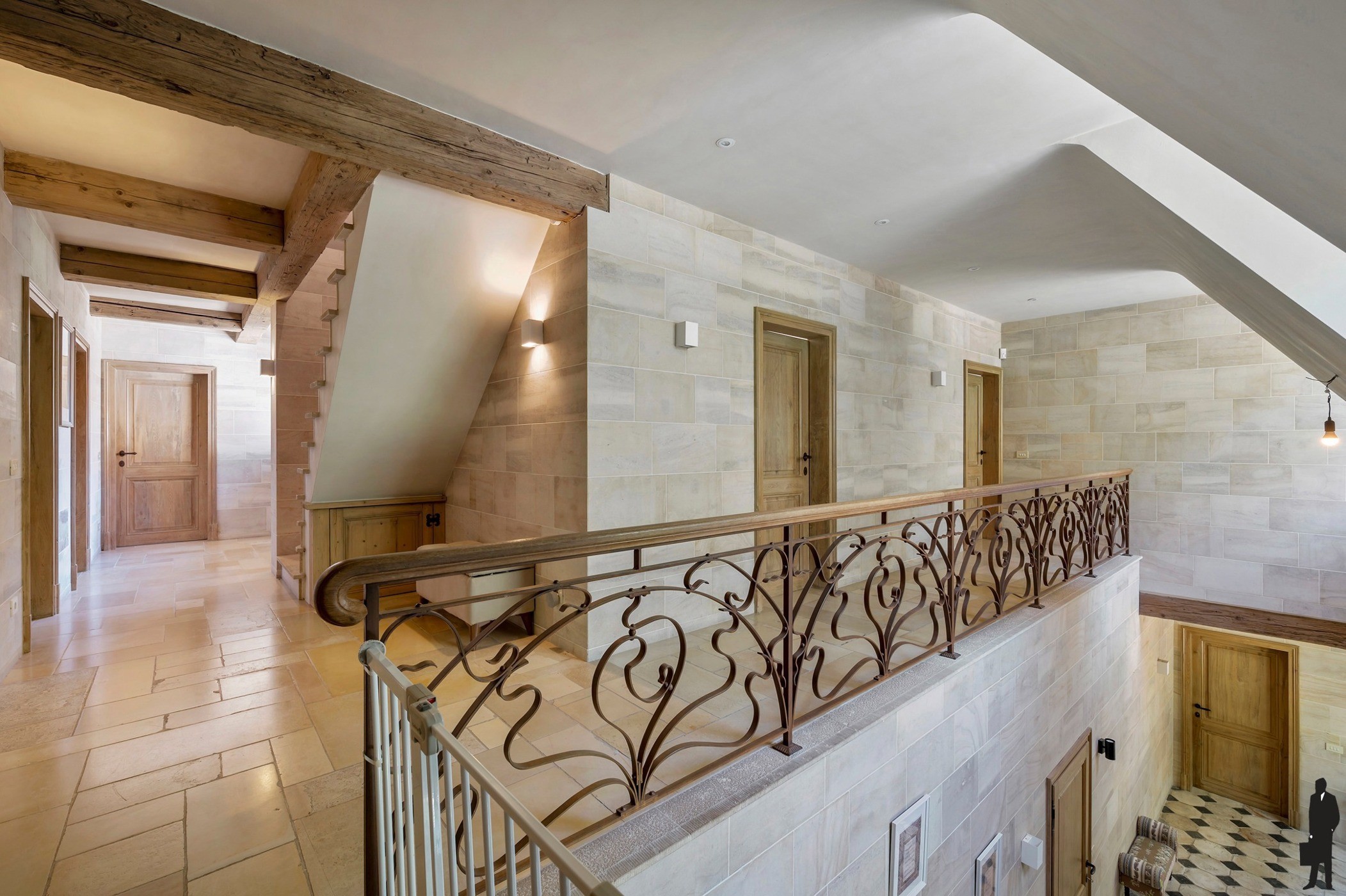 - Hoogwaardige afwerking met natuursteen, parket, moulures en authentieke details