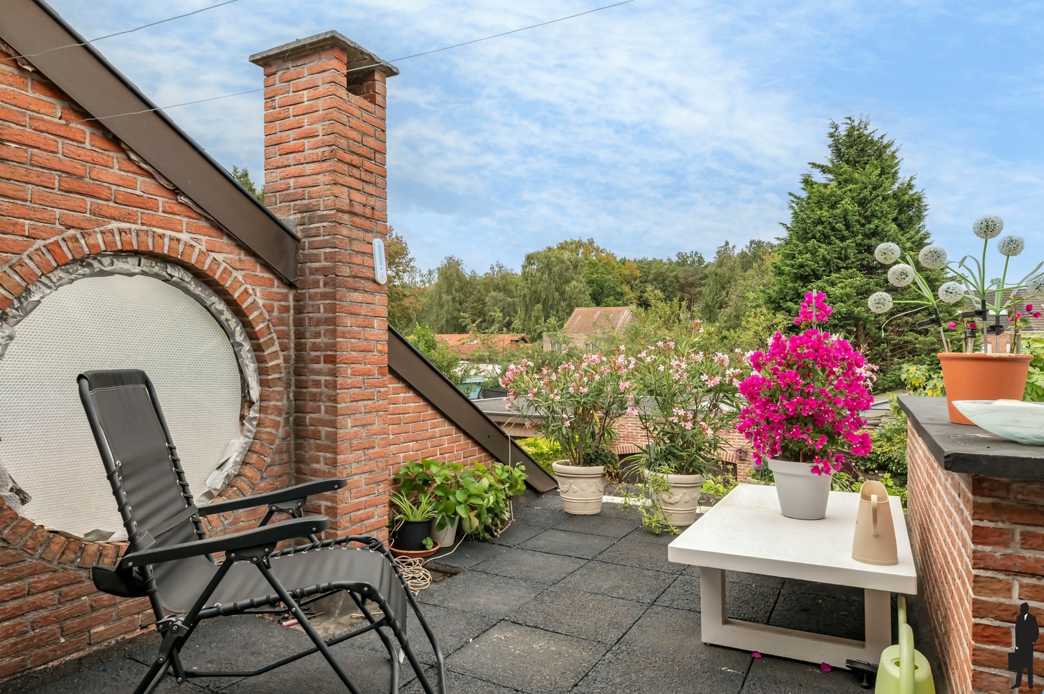 De eerste verdieping omvat twee ruime slaapkamers, een badkamer met ligbad en een dakterras met zicht op de groene omgeving.