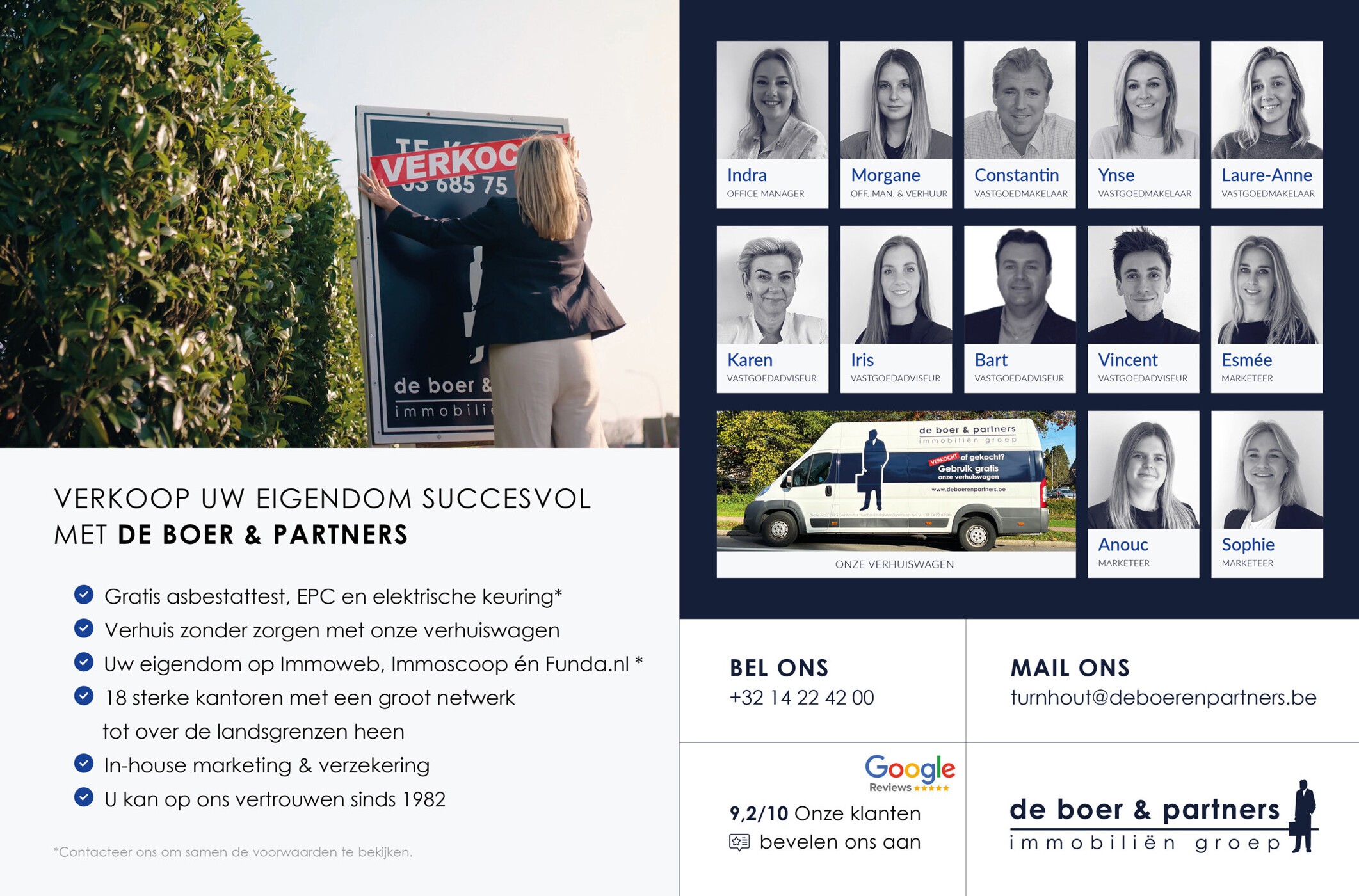 Op zoek naar een makelaar in Turnhout? Wij helpen u graag! Wilt u een woning kopen of verkopen in Turnhout? Wij bieden u deskundig advies en begeleiden u op een persoonlijke manier door het volledige proces. Dankzij onze uitgebreide kennis van de regio zorgen we voor een vlotte en succesvolle aan- of verkoop van uw eigendom. Wij zijn gespecialiseerd in de verkoop van huizen, appartementen en bouwgronden in Turnhout. Bent u benieuwd naar de waarde van uw woning? Vraag vandaag nog een gratis en vrijblijvende schatting aan en ontdek de marktwaarde van uw eigendom.