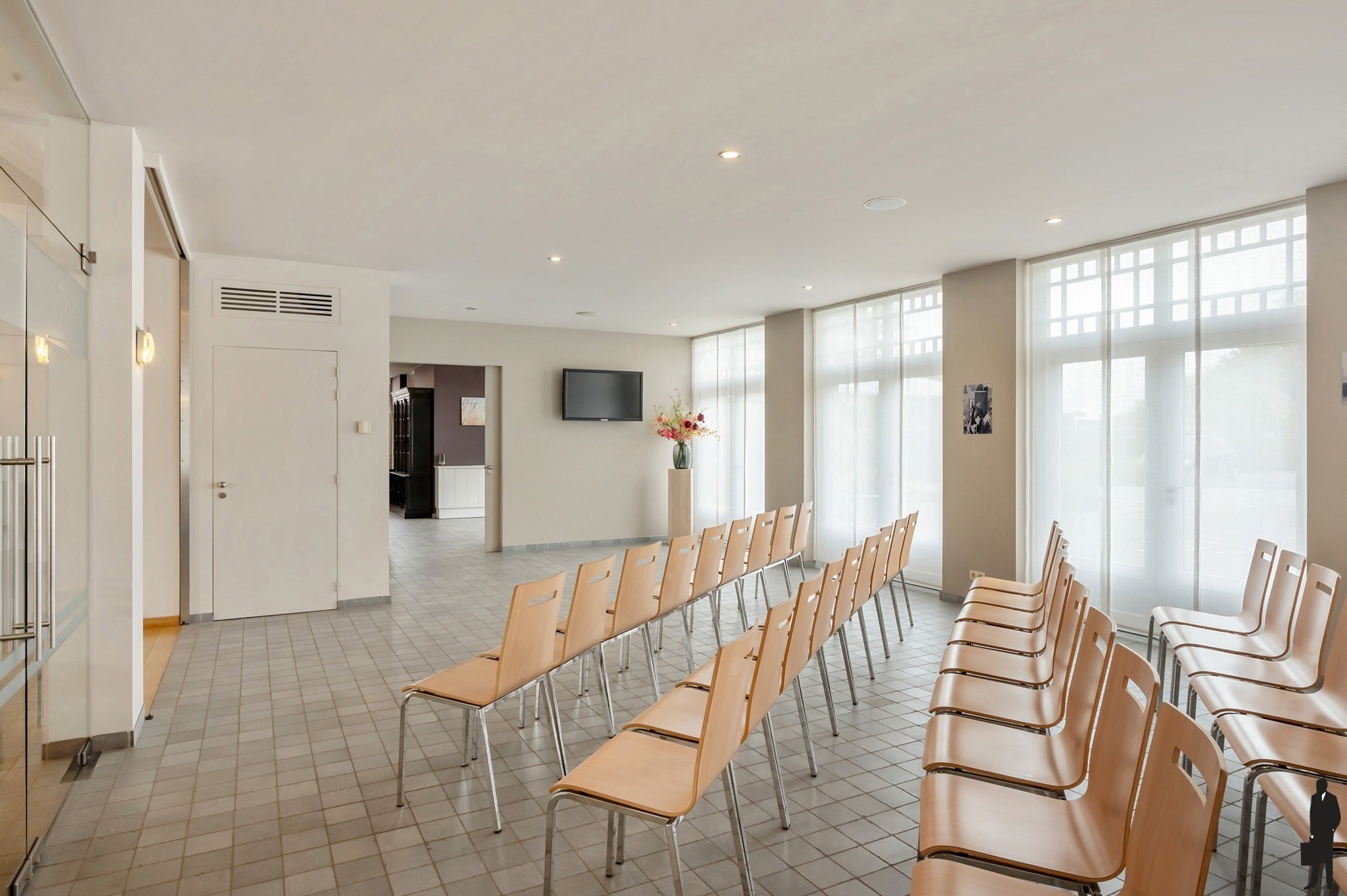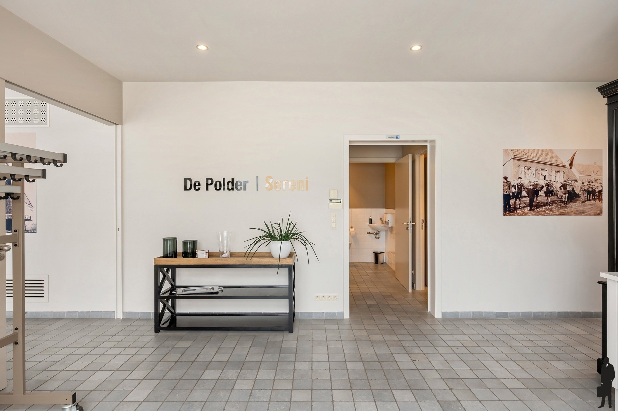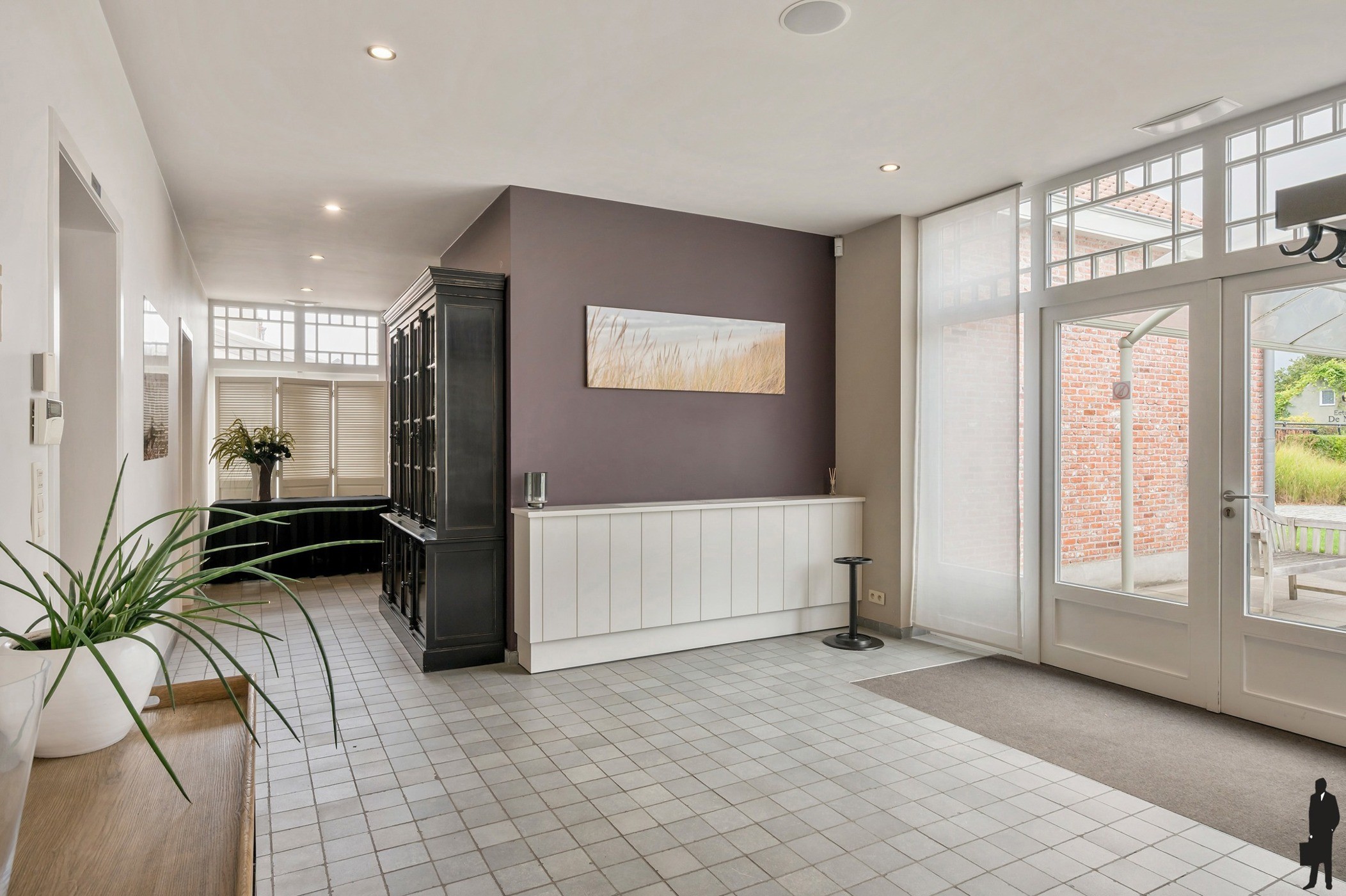 - Een statige inkomhal met vestiaire en sanitair dames/heren.
