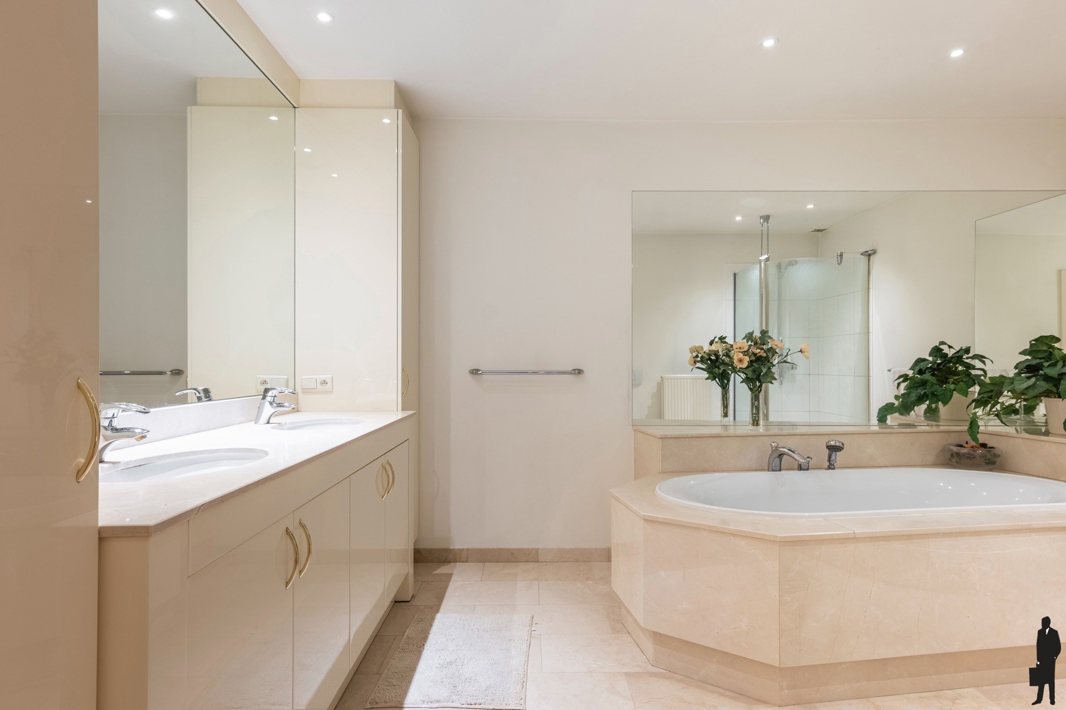 Buiten komt u volledig tot rust in de zuidgerichte, onderhoudsvriendelijke tuin met groot terras en zonneluifel. Hier geniet u in alle privacy van het verwarmde zwembad, voorzien van een aparte inpandige sanitaire ruimte met douche, omkleedkamer en technische installatie. Het geheel is volledig omheind en bereikbaar via een automatische toegangspoort.