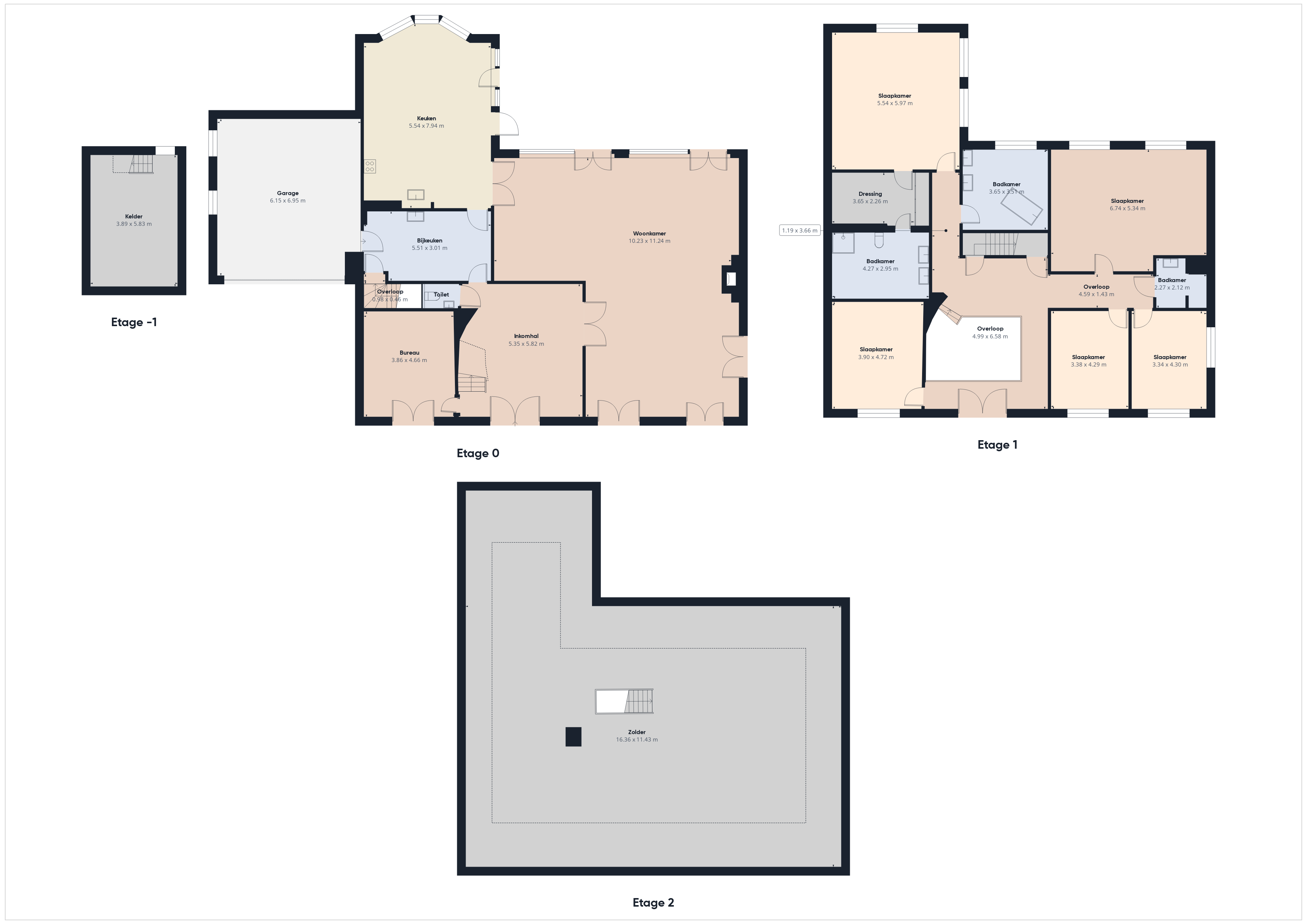 - Vijf slaapkamers, drie badkamers en drie toiletten