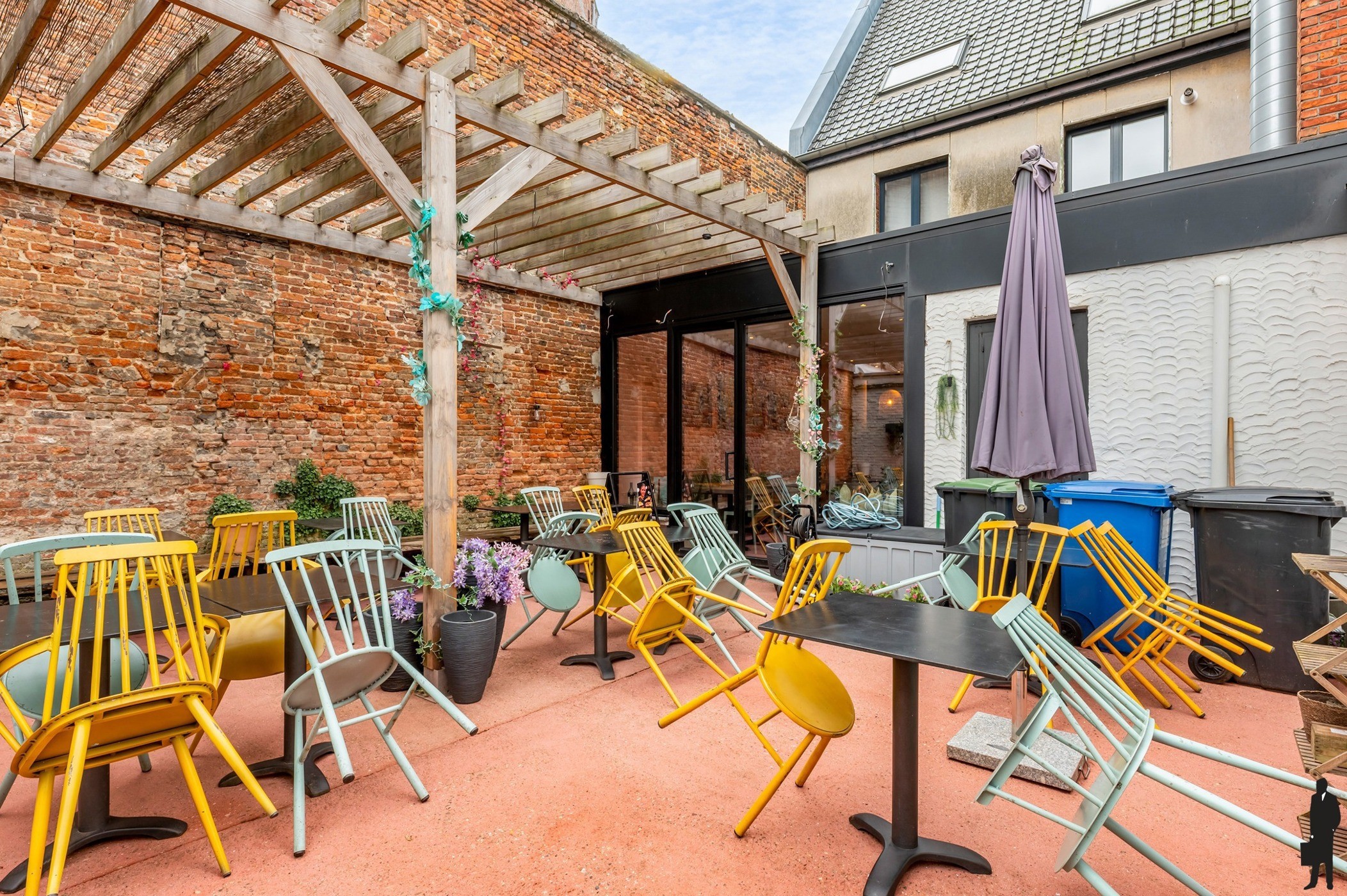 Gelijkvloers: De commerciële ruimte bestaat uit een horecazaak met een uitgeruste keuken en een ruim terras, ideaal voor buitengebruik.