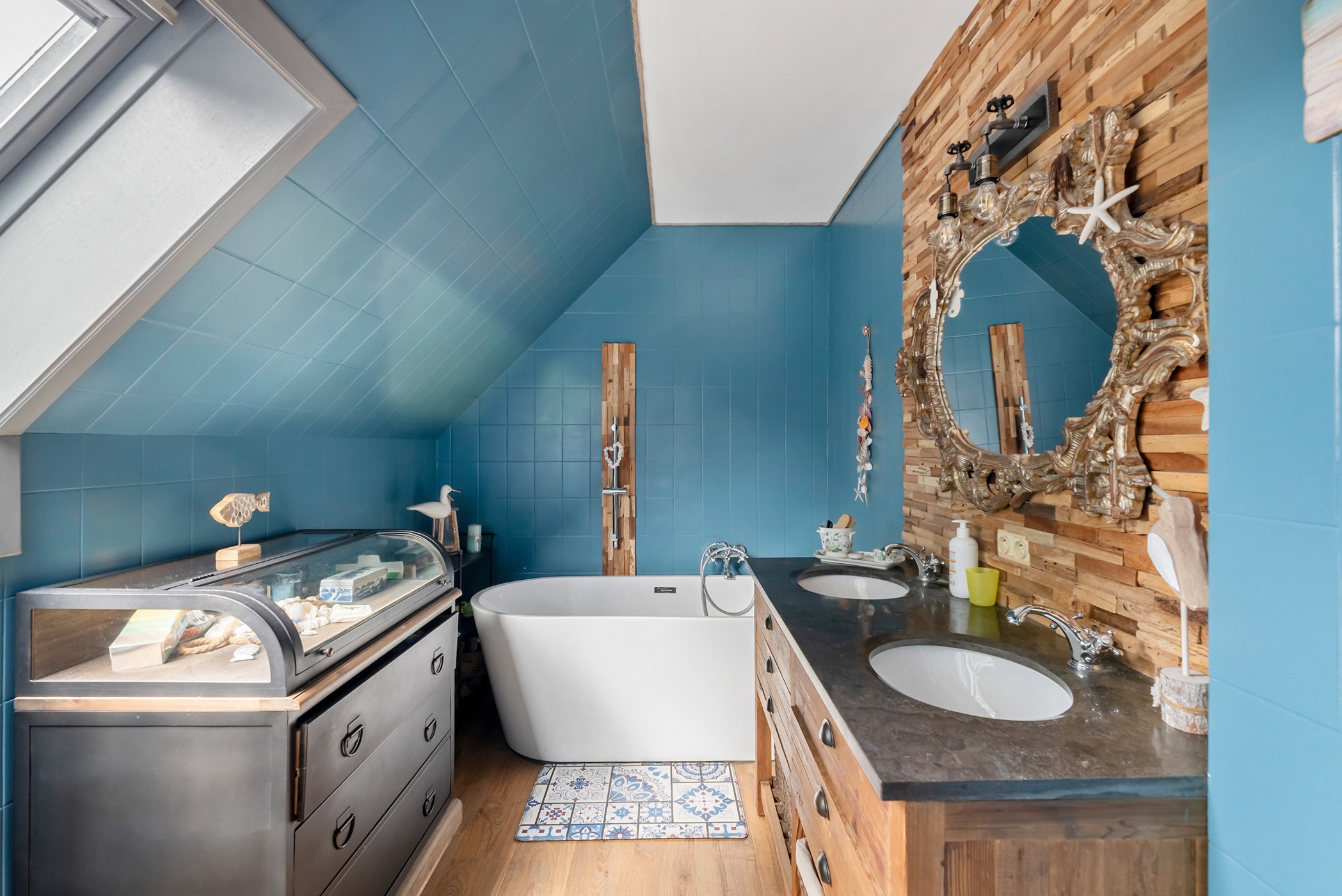 Vanuit de nachthal zien we 6 slaapkamers, één apart toilet en 2 badkamers waarvan één apart met bad, dubbele lavabo met badkamermeubel en toilet en één in de masterbedroom met inloopdouche, bad en twee lavabo's met badkamermeubel. Tevens is er ook nog een zoldergedeelte (boven de eetgelegenheid), bereikbaar met vaste trap, ideaal om in te richten als polyvalente ruimte of extra bergruimte.