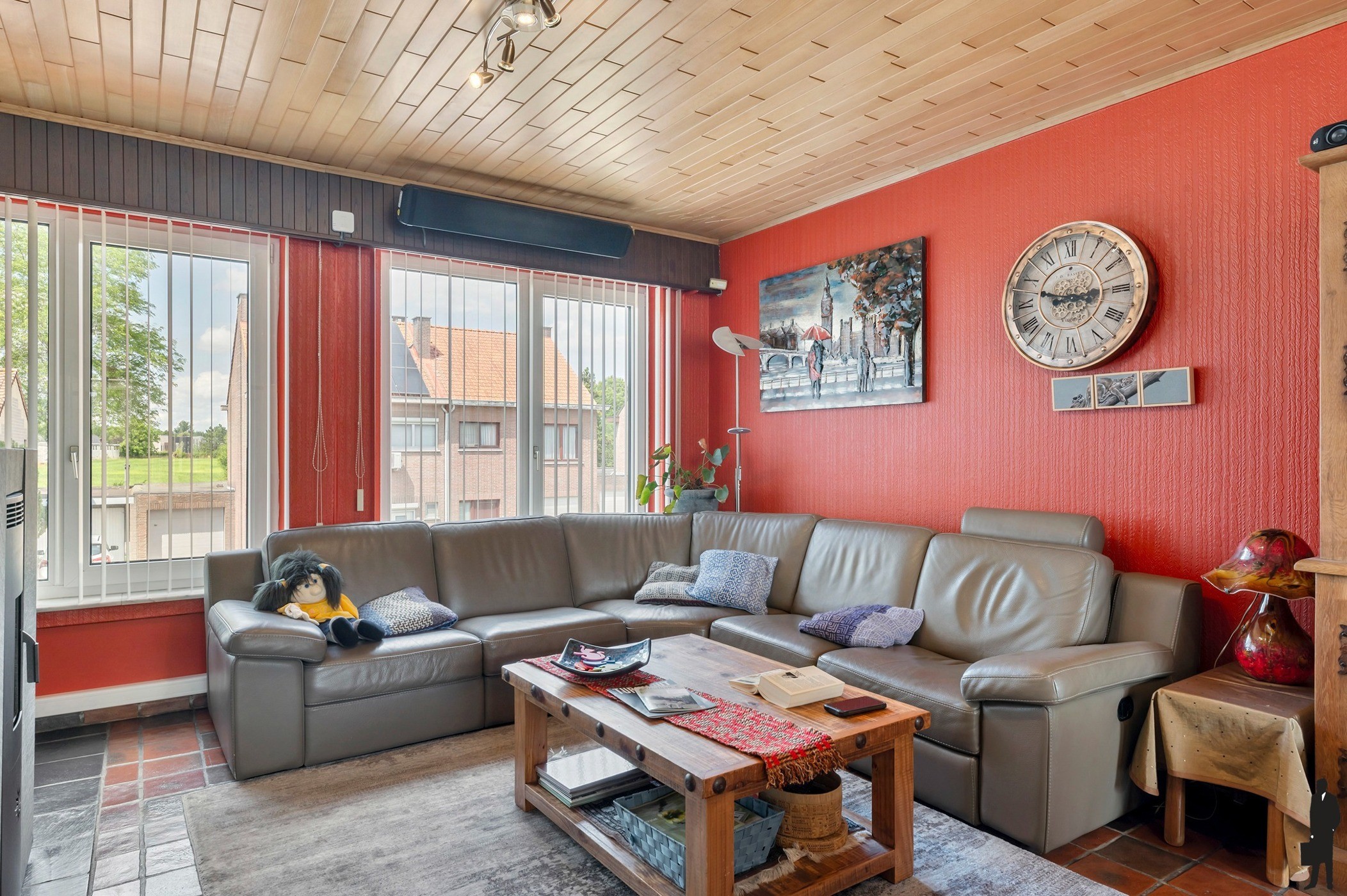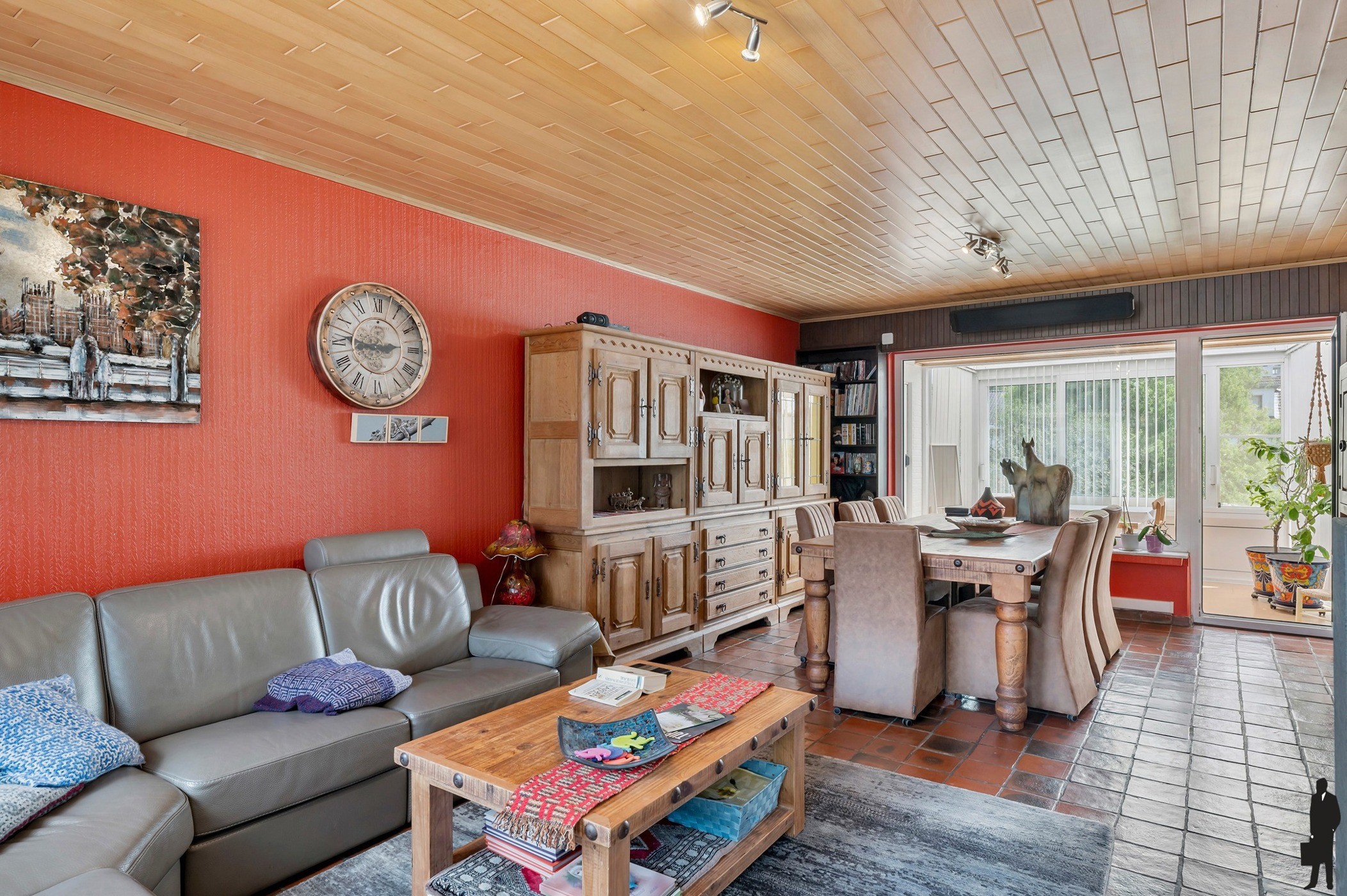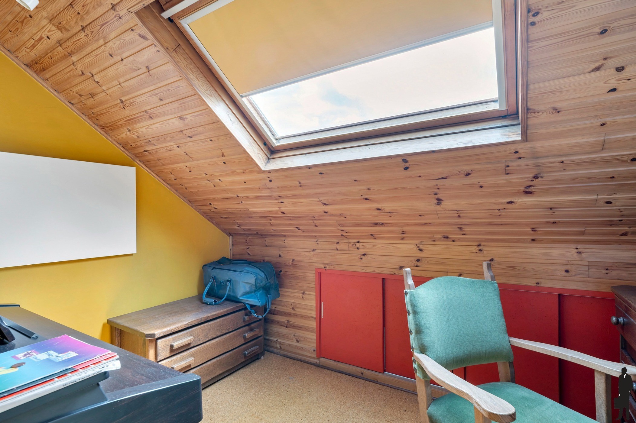 Eerste verdieping: De leefruimte op de eerste verdieping straalt warmte en gezelligheid uit dankzij de pelletkachel. Een kleine veranda aansluitend aan de woonkamer zorgt voor extra lichtinval en een aangenaam zicht op de tuin.