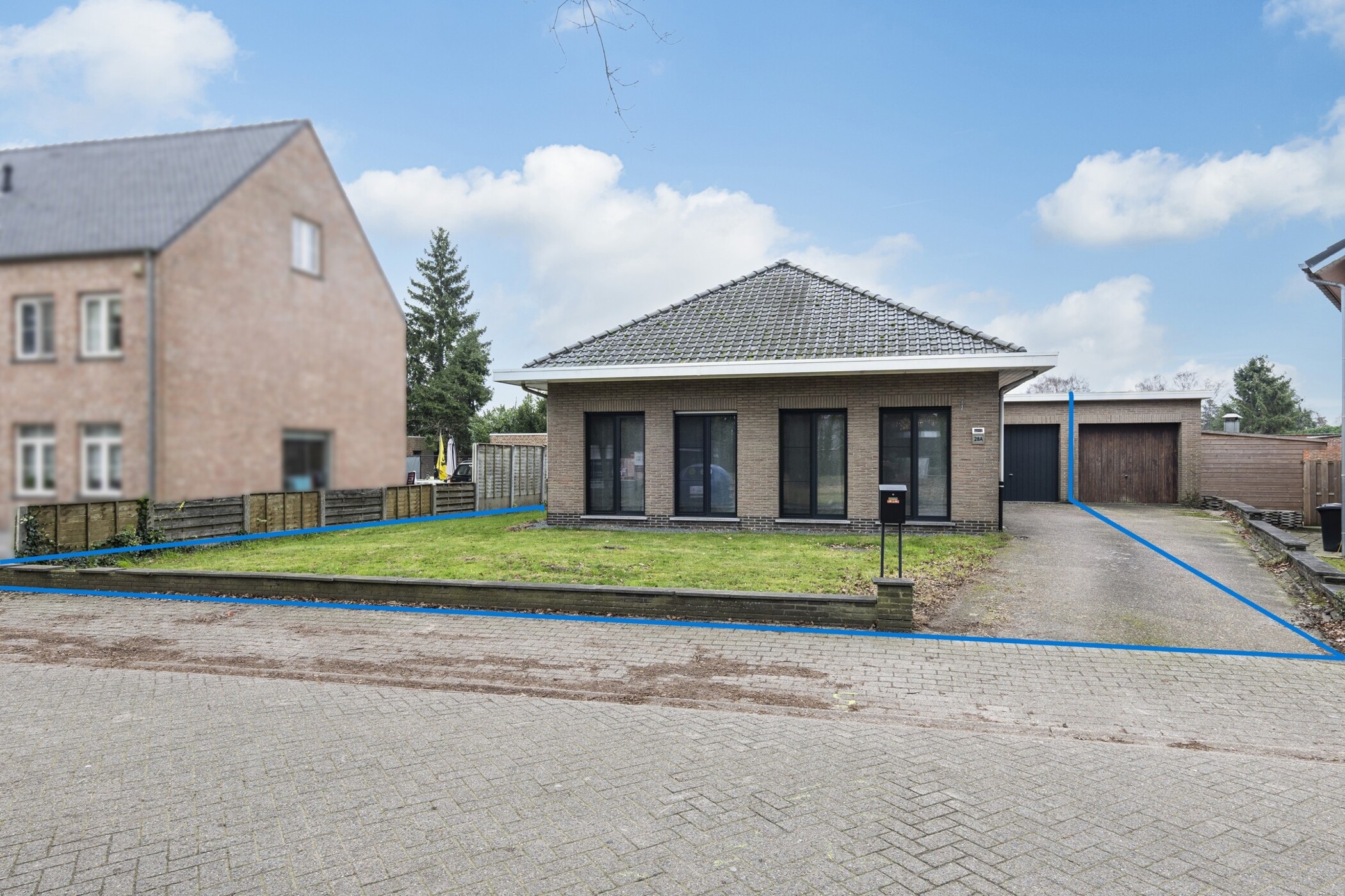 Let op: de tweede garage behoort tot het eigendom van de buren.