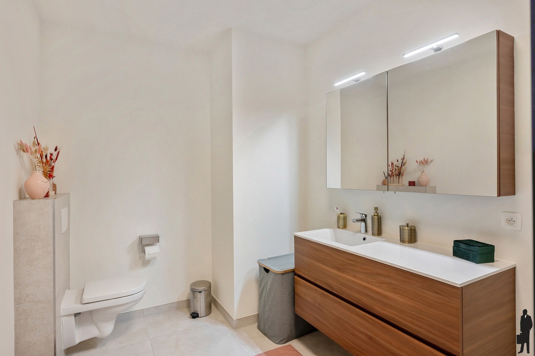 - Moderne badkamer met inloopdouche, wastafel, toilet en handdoekverwarmer