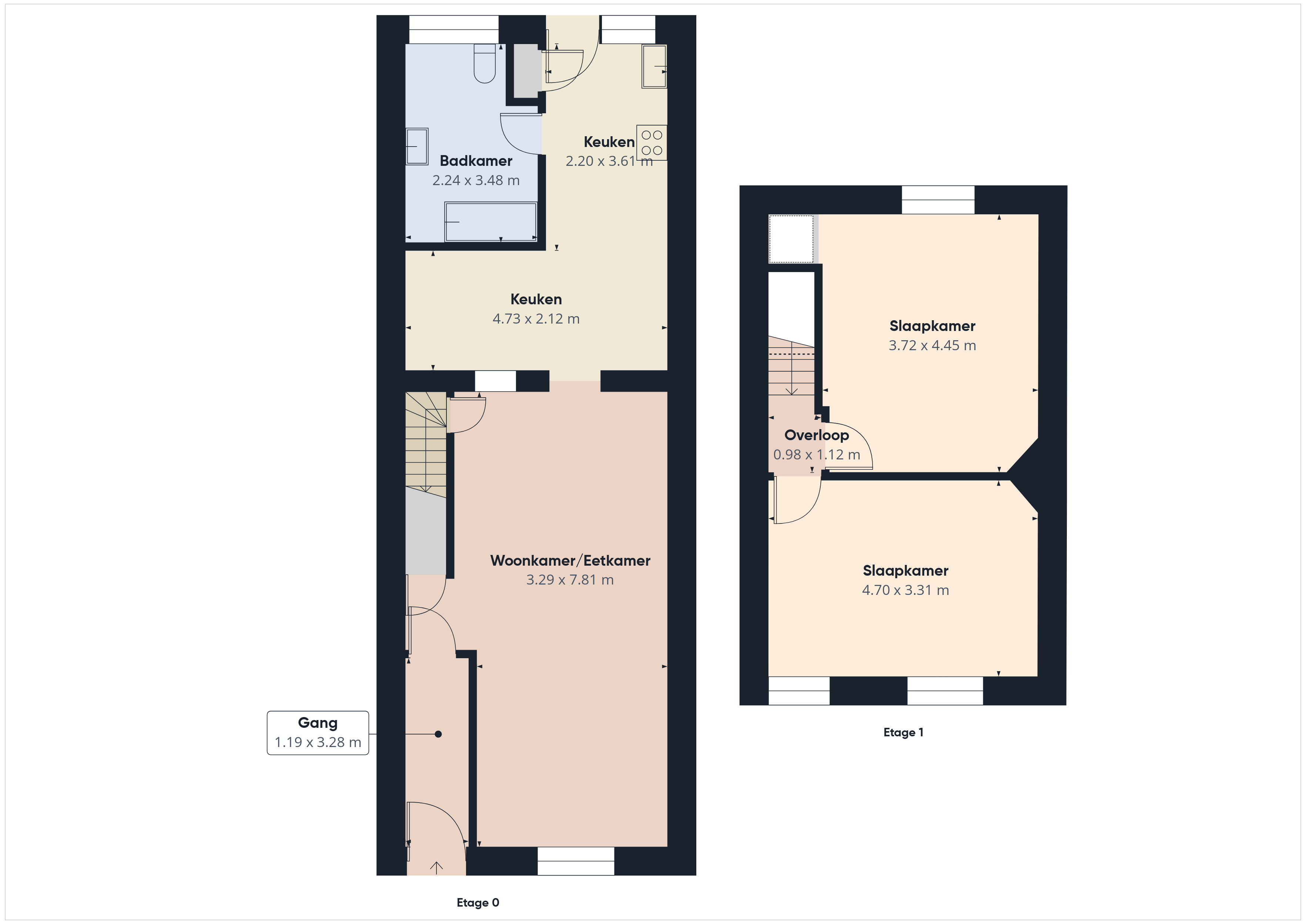 Via de woonkamer met de vaste trap naar de eerste verdieping. Hier bevinden zich twee ruime slaapkamers. Er is makkelijk een mogelijkheid om de zolderverdieping toegankelijk te maken en hier nog extra ruimte in gebruik te nemen.