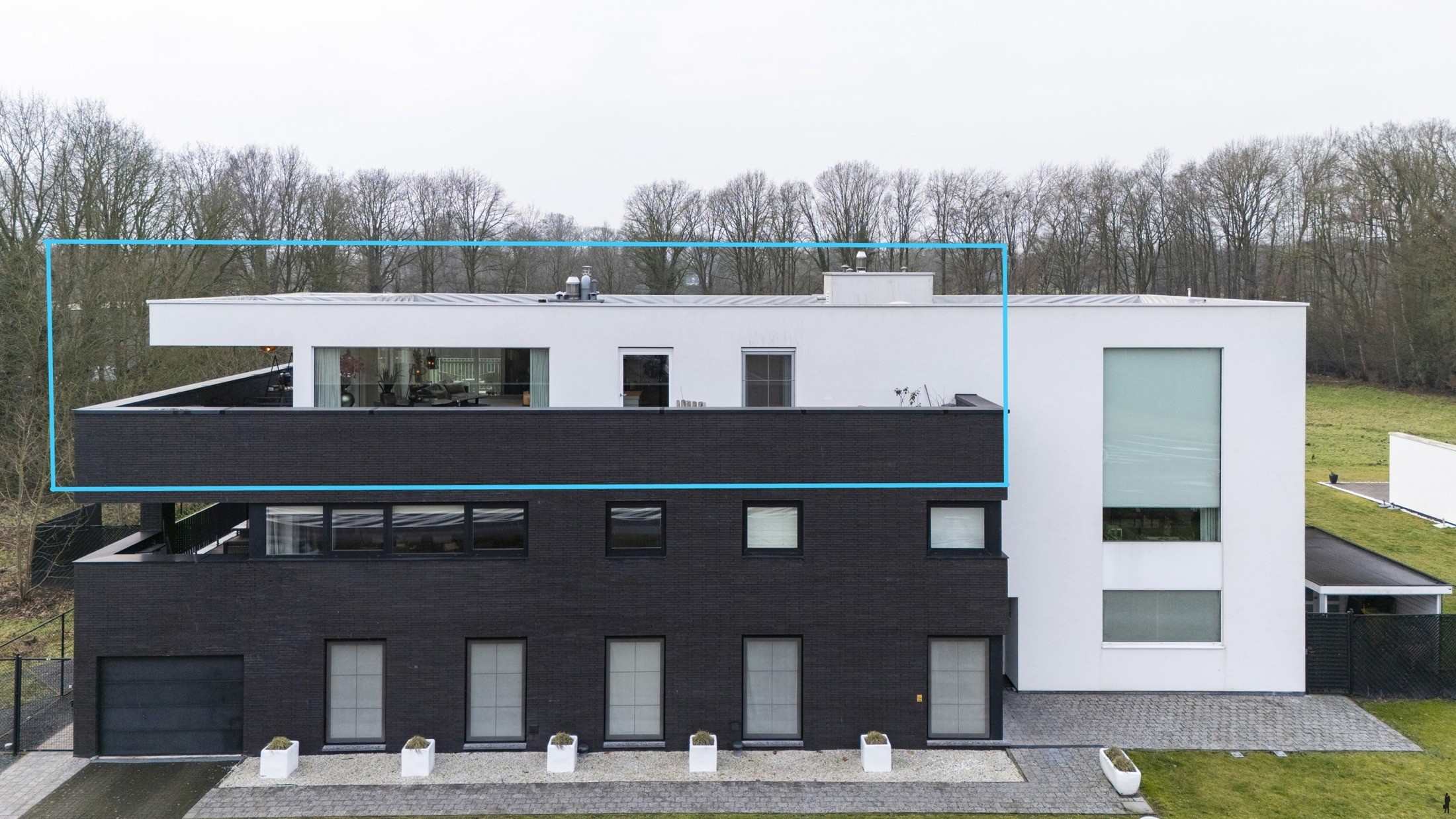 Aan de achterzijde bevindt zich een ruim terras dat zich uitstrekt over de volledige breedte van het appartement. Vanuit beide slaapkamers heeft u rechtstreeks toegang tot dit terras, waar u in alle rust geniet van het groene uitzicht op het Heilig-Graf, volledig vrij van inkijk.