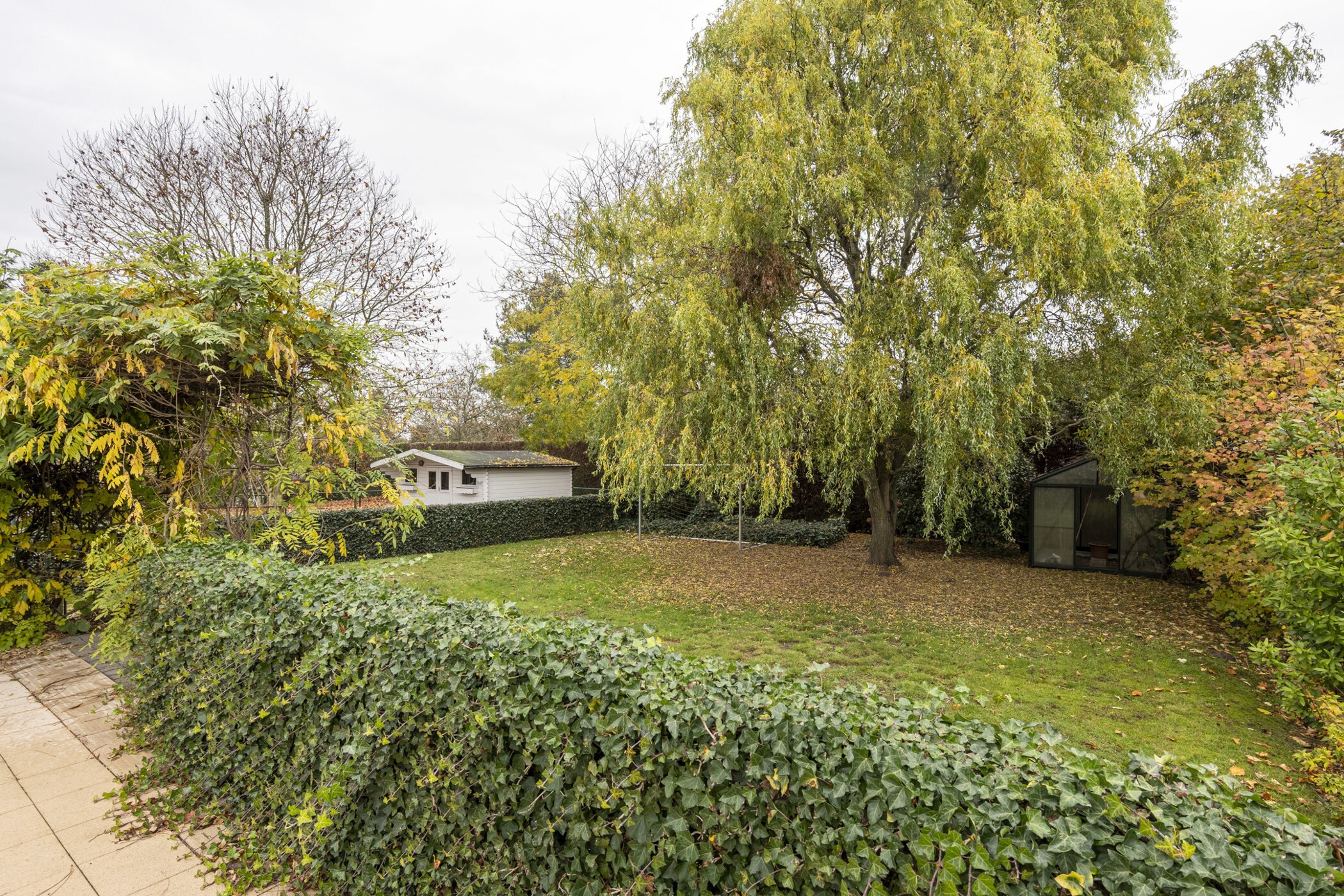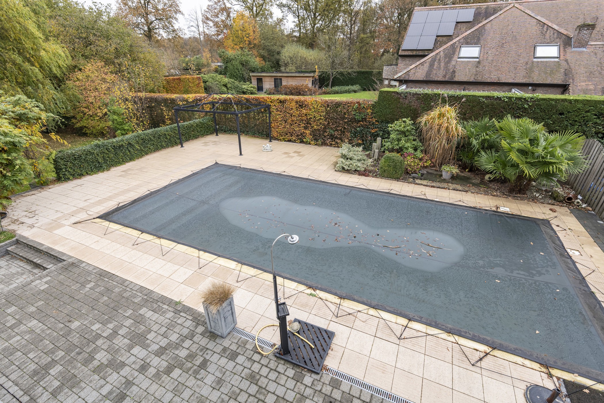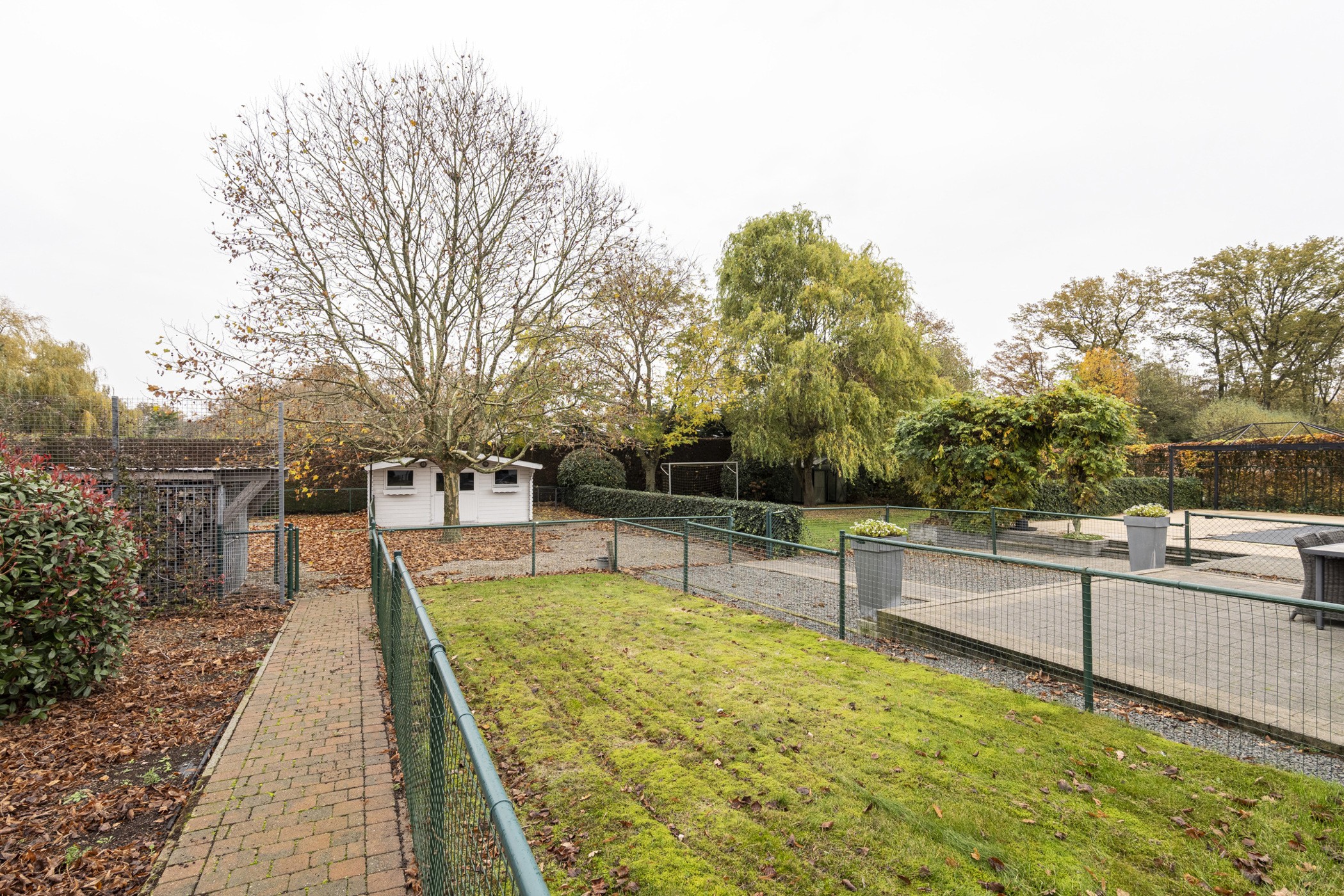 Grote, omheinde tuin met zwembad