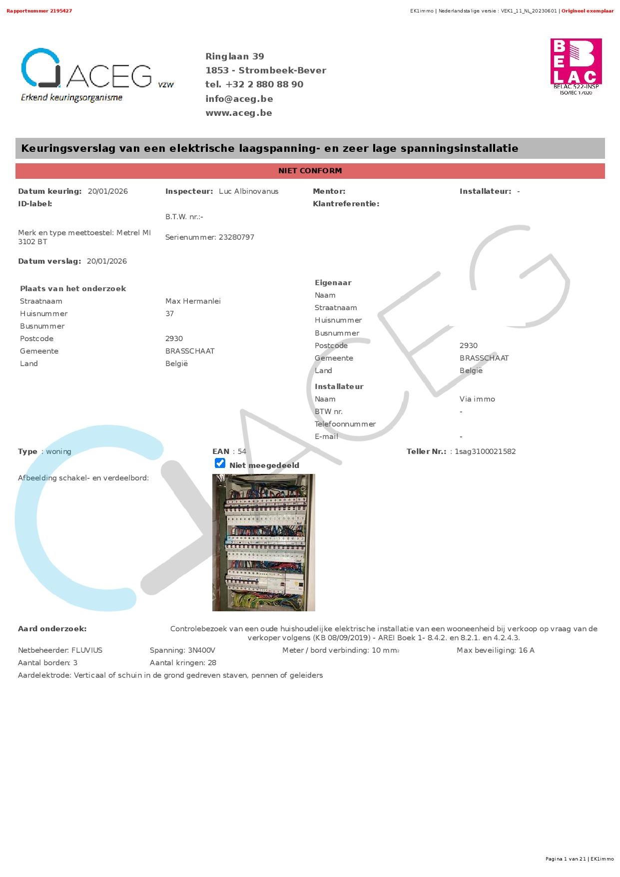 - Conforme elektrakeuring wordt voorzien bij akte.
