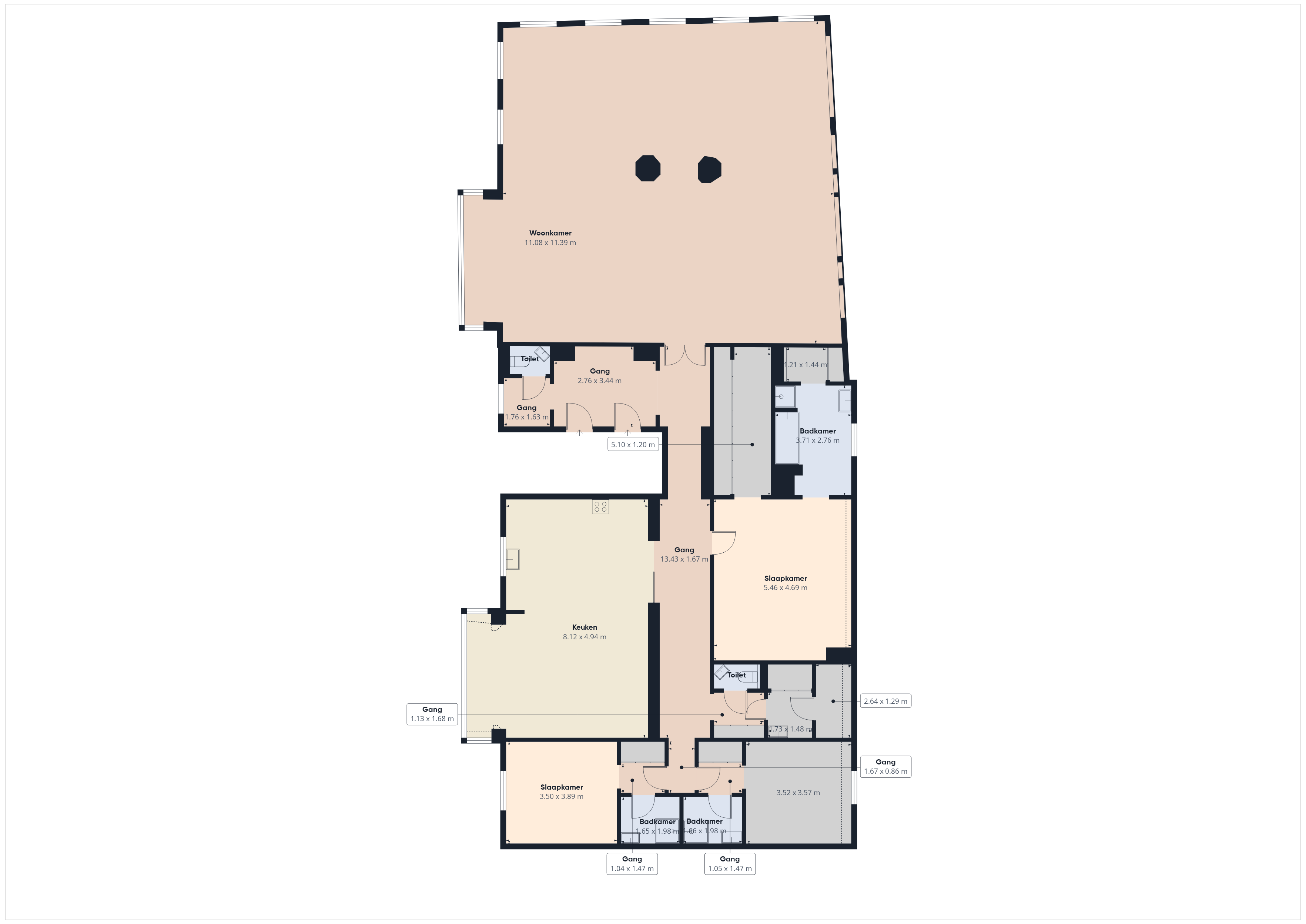 • Een ruime keuken met correcte proporties vormt een tweede ankerpunt binnen de woning — ideaal voor wie houdt van koken, entertaining of langdurig thuis genieten.