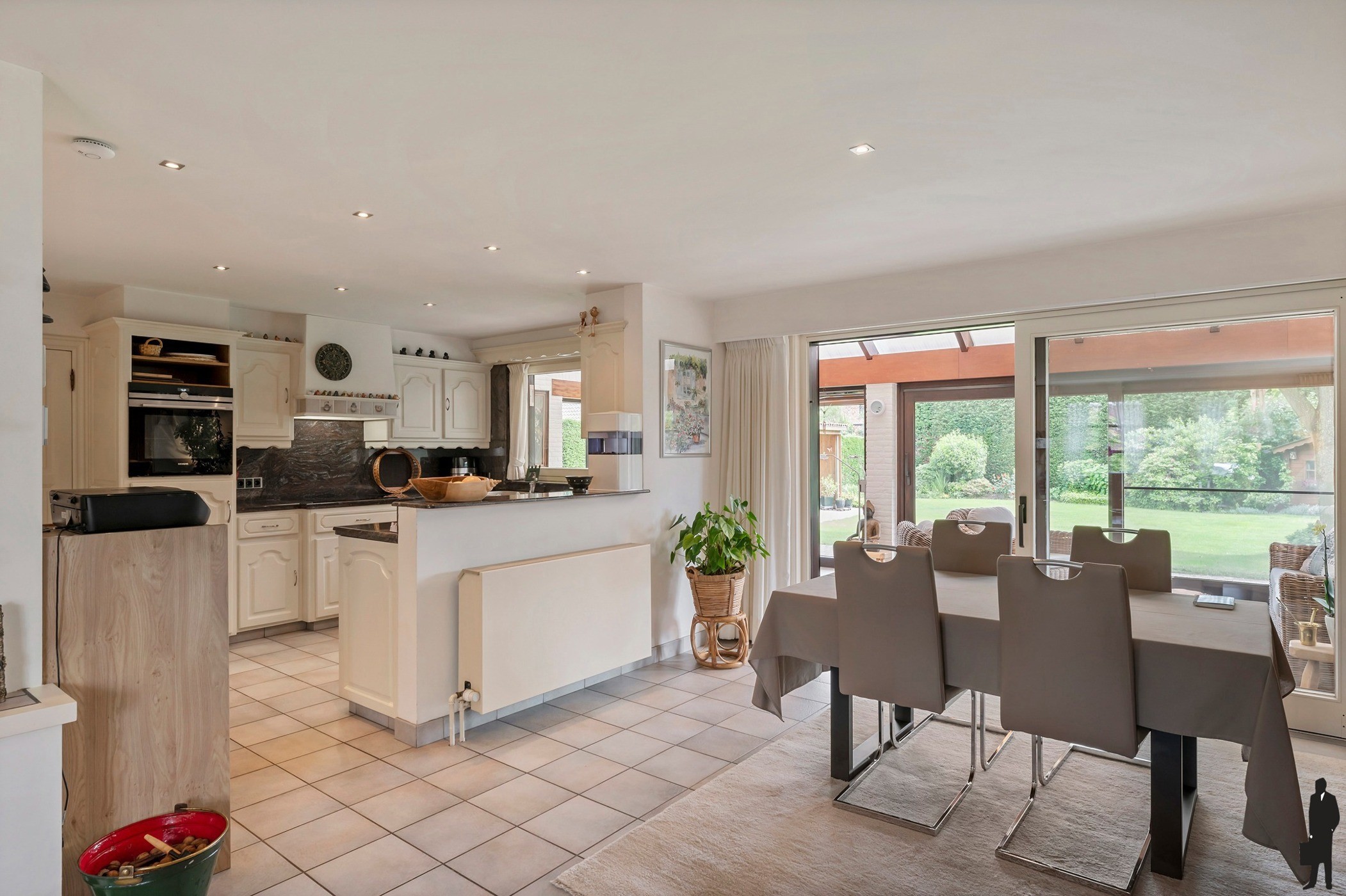 Via de hal is ook de tuinkamer / veranda bereikbaar. Deze riante tuinkamer (ca. 25m2) biedt zicht op de achtergelegen zuidgeoriënteerde tuin.