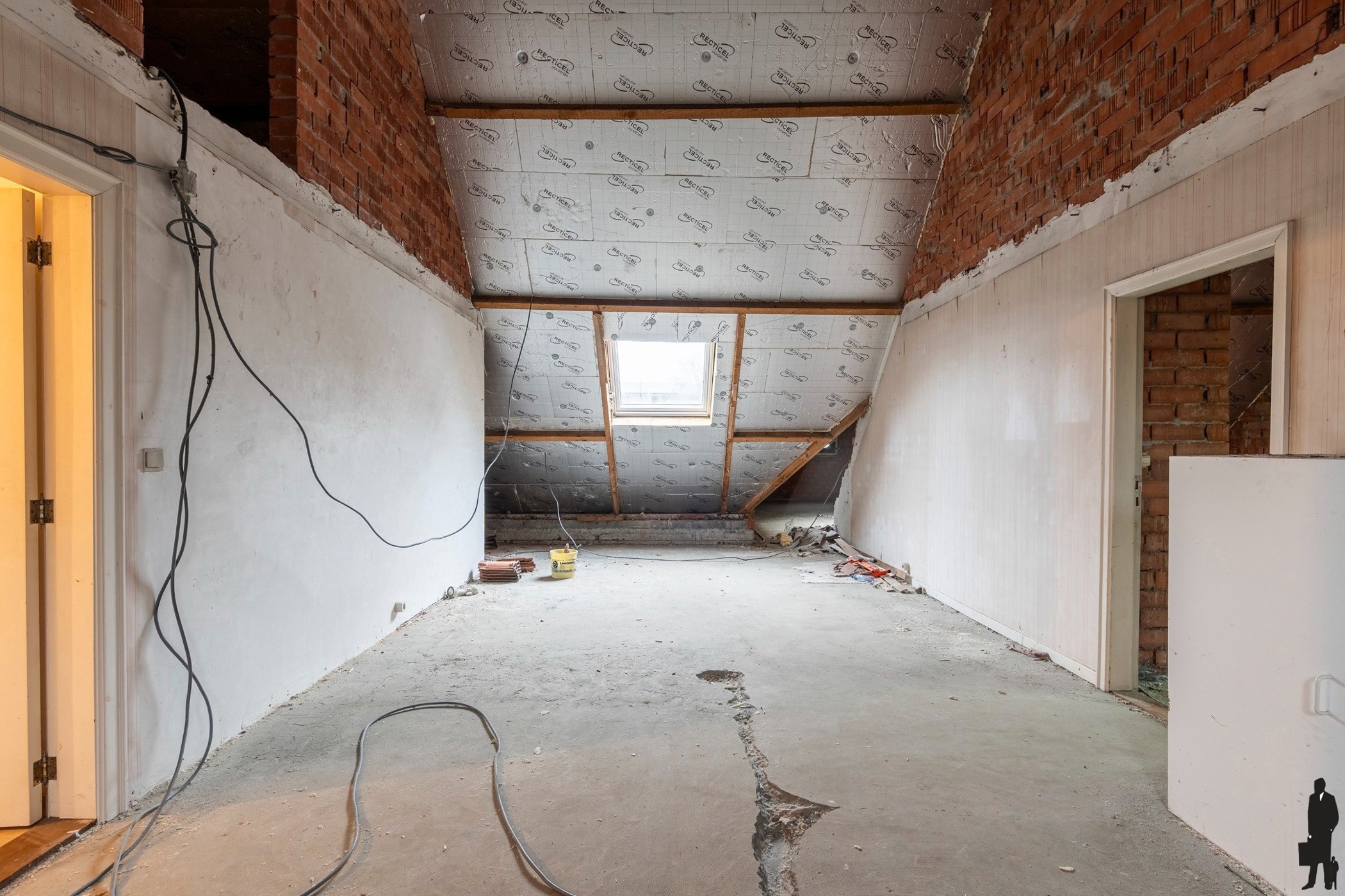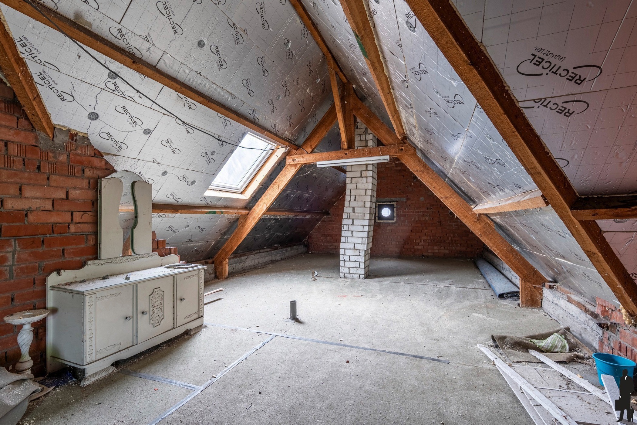 Op de verdieping bevindt zich een lichtrijke overloop en een volledig gerenoveerde zolderverdieping met reeds één ruime, afgewerkte slaapkamer. Daarnaast zijn er voorzieningen voor een tweede badkamer en is er voldoende ruimte om extra slaapkamers, een bureau of hobbyruimte te creëren, volledig naar eigen wens.