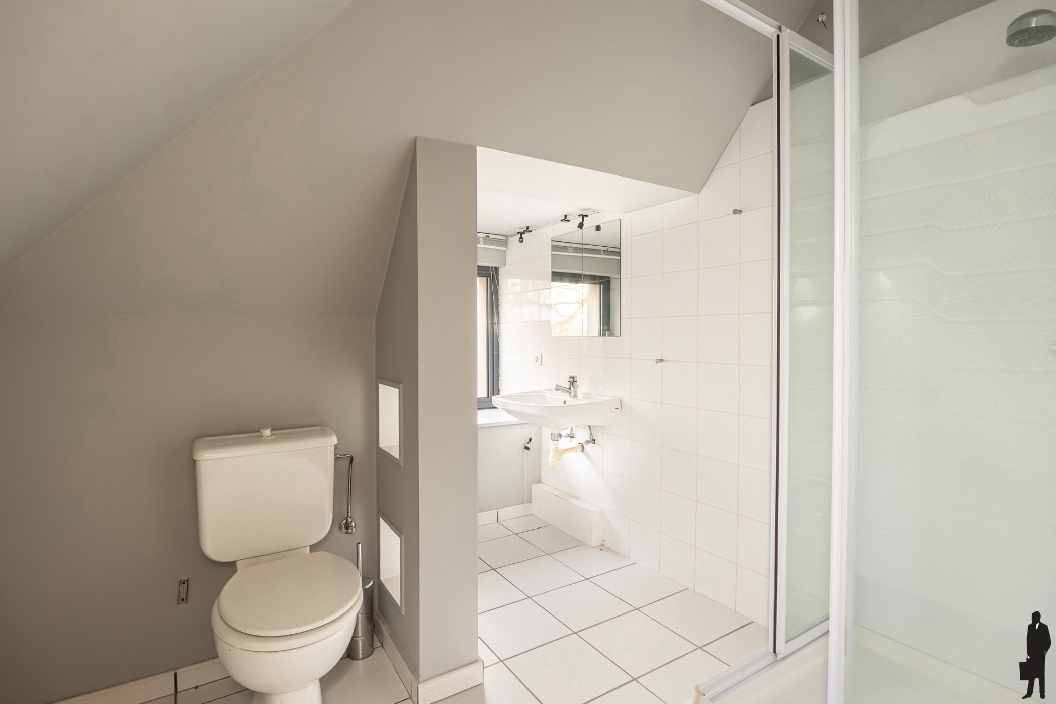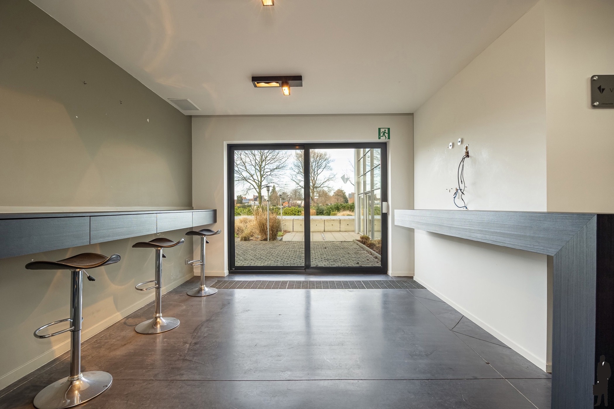 De villa is vandaag in gebruik als kantoorruimte, maar kan zonder grote ingrepen opnieuw worden ingericht als ruime gezinswoning. Open volumes, overvloedig daglicht en een groene, rustige setting zorgen voor een aangename leef- en werkomgeving.