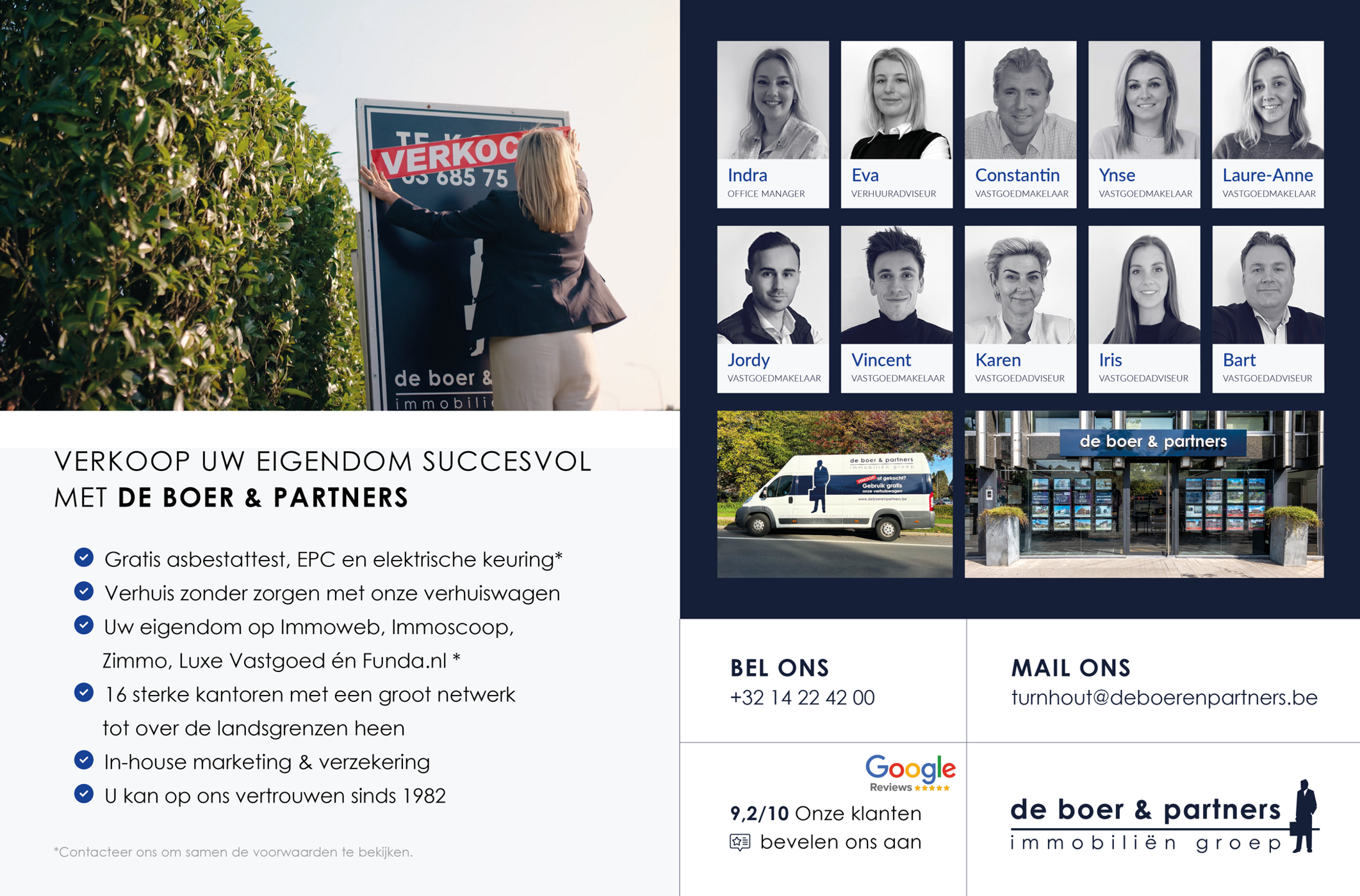 Op zoek naar een makelaar in Turnhout? Wij helpen u graag! Wilt u een woning kopen of verkopen in Turnhout? Wij bieden u deskundig advies en begeleiden u op een persoonlijke manier door het volledige proces. Dankzij onze uitgebreide kennis van de regio zorgen we voor een vlotte en succesvolle aan- of verkoop van uw eigendom. Wij zijn gespecialiseerd in de verkoop van huizen, appartementen en bouwgronden in Turnhout. Bent u benieuwd naar de waarde van uw woning? Vraag vandaag nog een gratis en vrijblijvende schatting aan en ontdek de marktwaarde van uw eigendom.