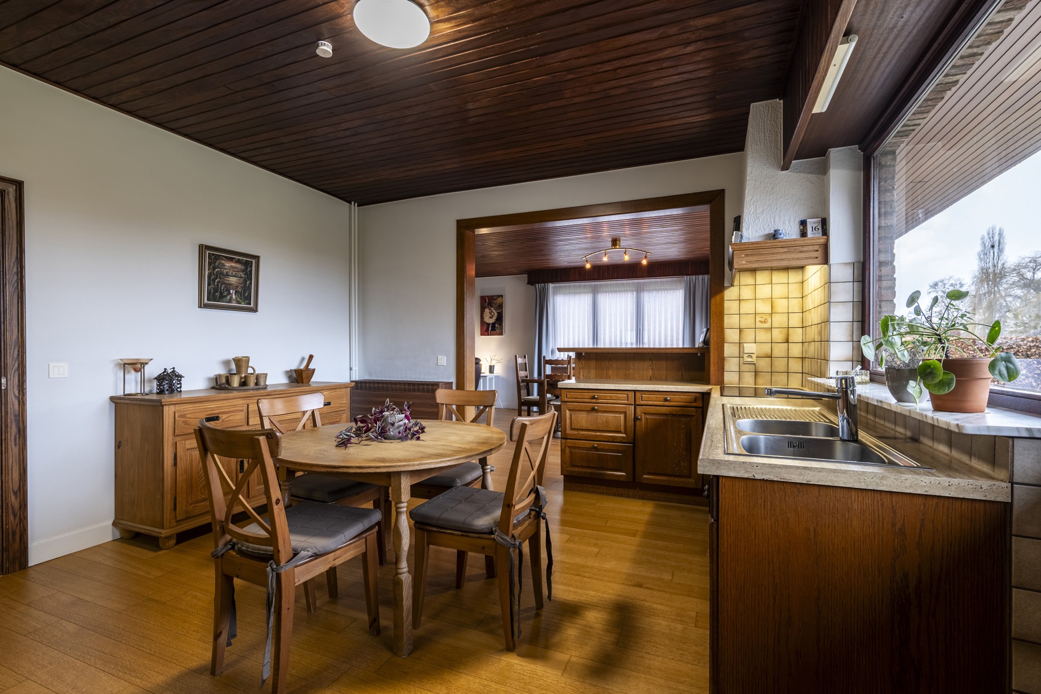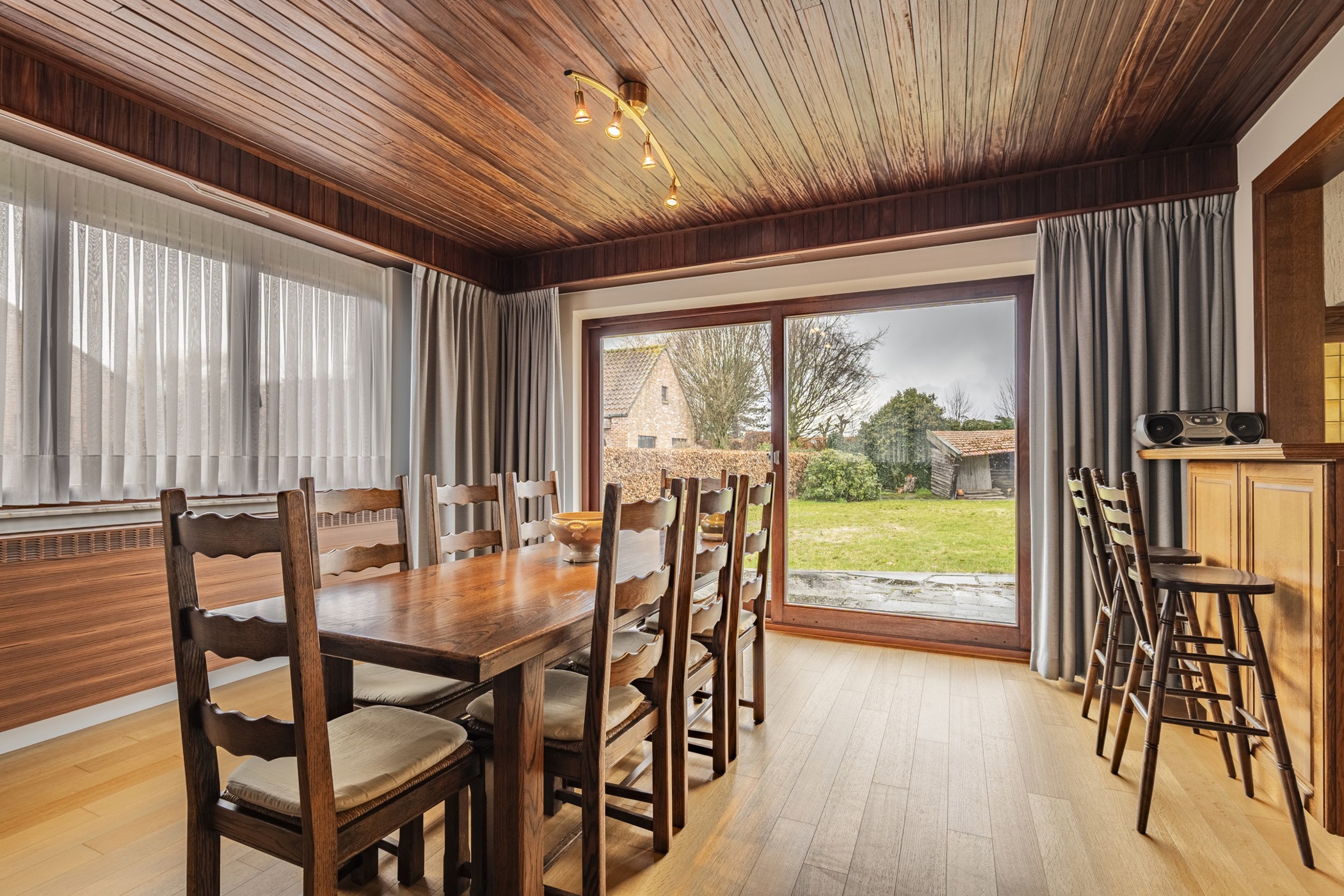 Bij het betreden van de woning komt u in een lichtrijke inkomhal met ruimte voor een vestiaere. Vanuit de hal heeft u enerzijds toegang tot de gezellige leefruimte en anderzijds tot de slaapkamers, de vernieuwde badkamer en de inpandige garage. De woonkamer baadt in het licht en biedt voldoende ruimte voor een comfortabele zithoek rond de kachel en televisie. Aansluitend bevindt zich de eetplaats, die via een schuifpui uitgeeft op het terras. Op zonnige dagen vormt de tuin een natuurlijk verlengstuk van de leefruimte en geniet u van een prachtig groen uitzicht.
