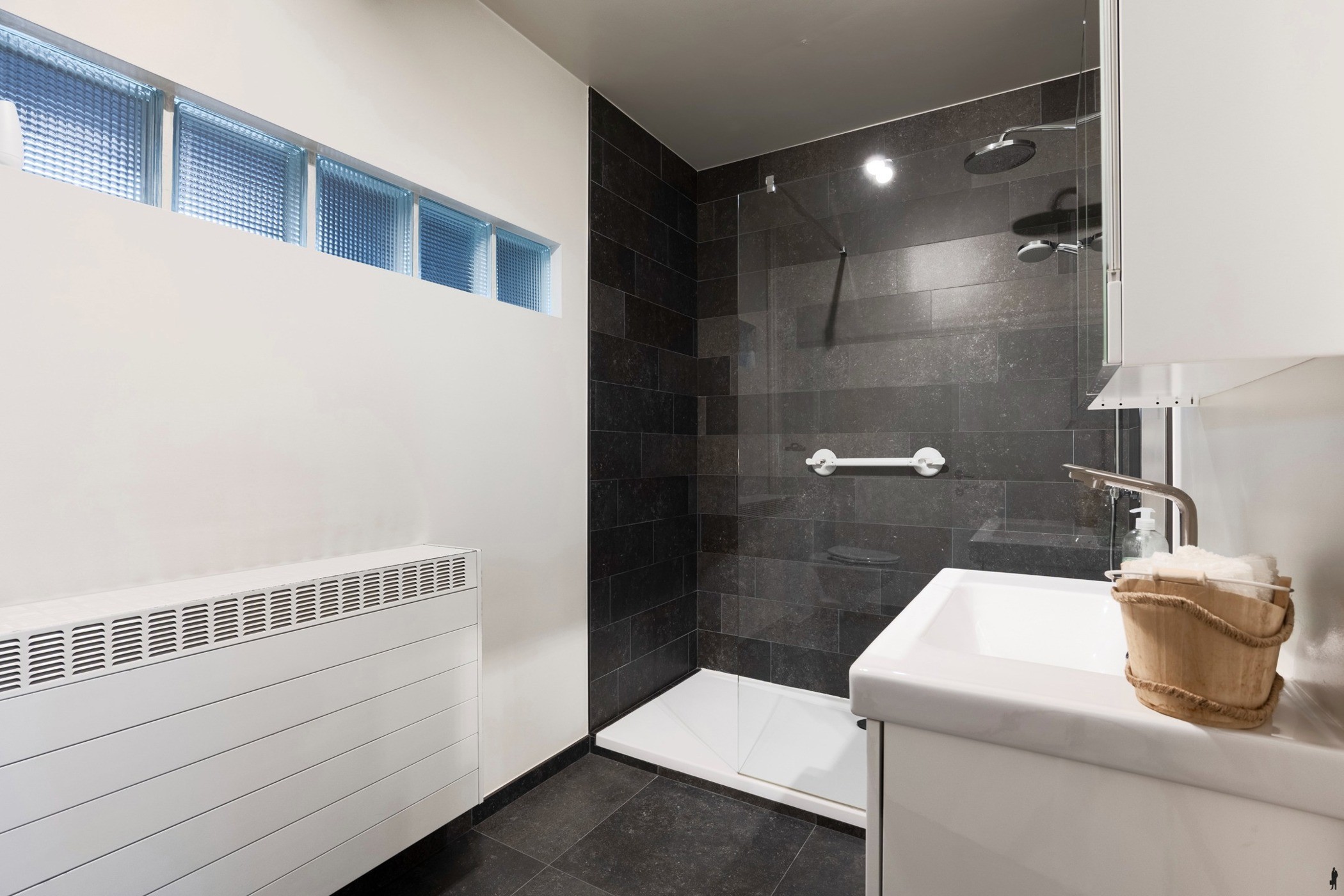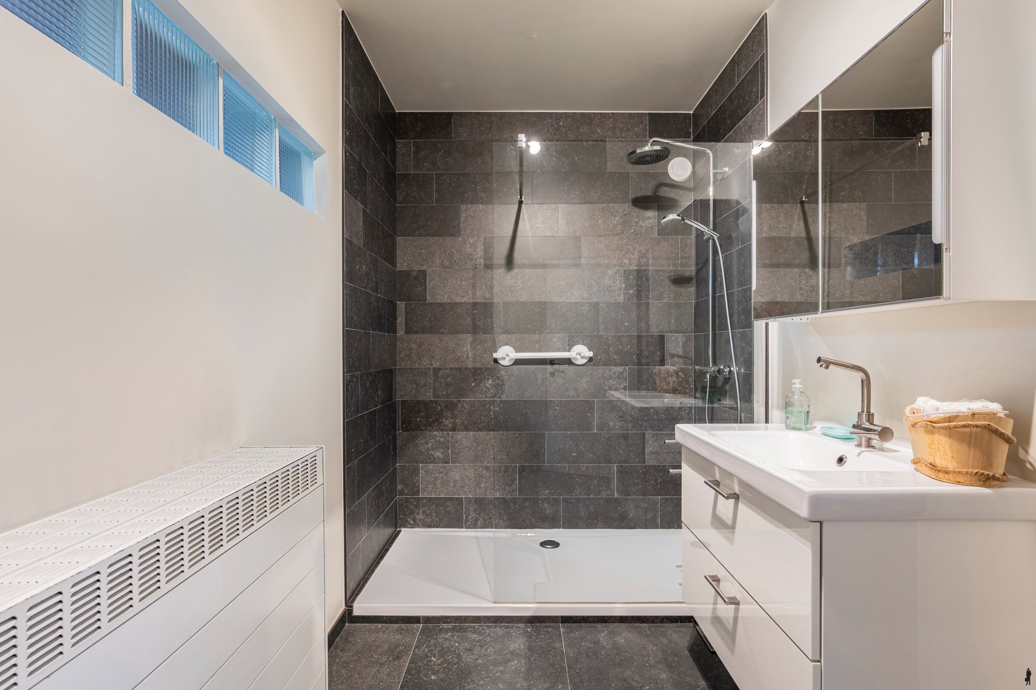 Deze woning is bovendien levensloopbestendig, met ruime slaapkamers en een volledig vernieuwde badkamer op het gelijkvloers. De badkamer is modern afgewerkt en uitgerust met een douche en maatwerkmeubilair met wastafel. Alle drie de slaapkamers zijn volwaardig en bevinden zich aan de straatzijde. Verder beschikt de woning over een ruime inpandige garage met automatische poort en een praktische washoek met een toilet.