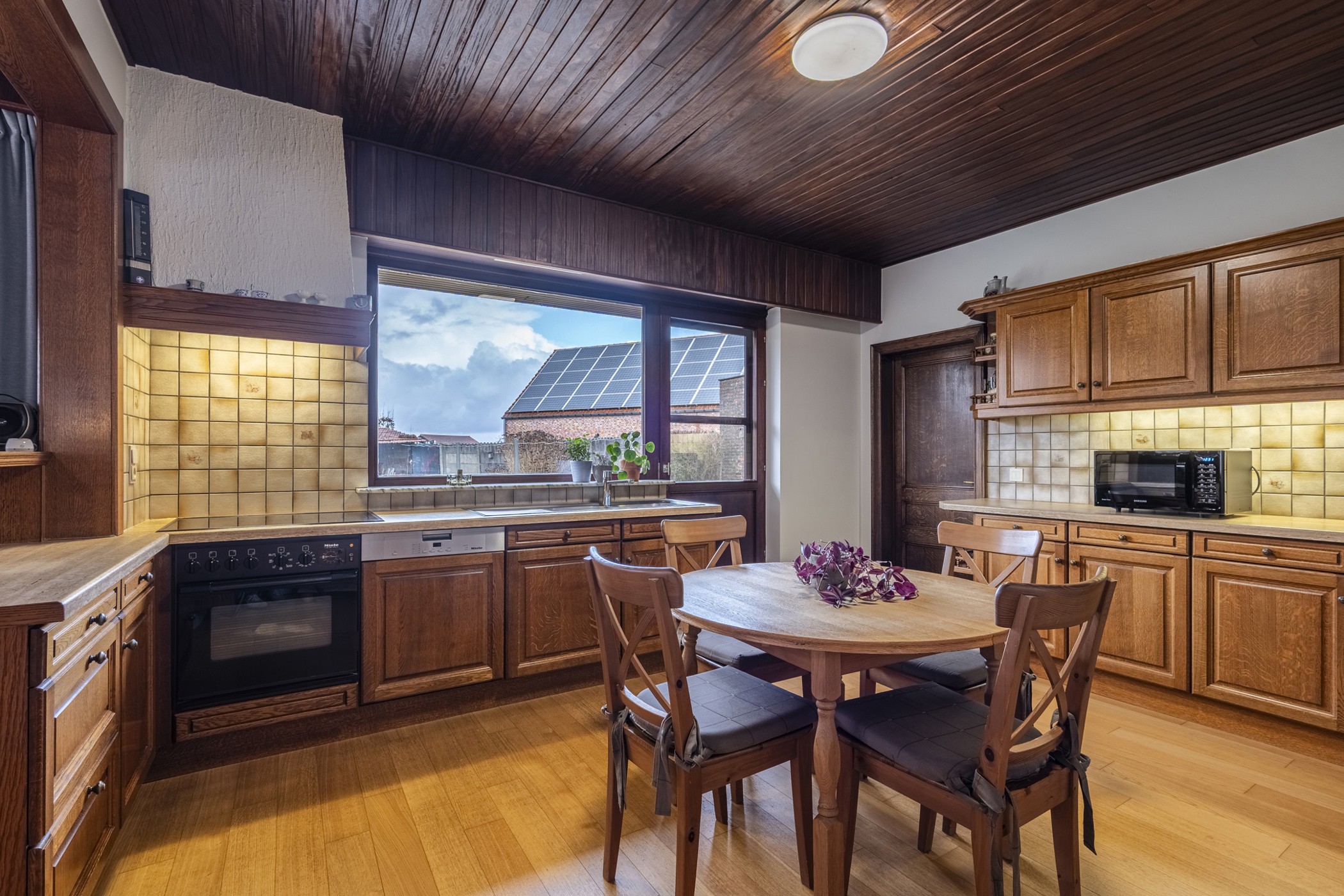 De centraal gelegen keuken is praktisch ingericht en voorzien van de nodige aansluitingen. Dankzij de open connectie met de eetruimte en het terras blijft u steeds in contact met uw gezin of gasten.