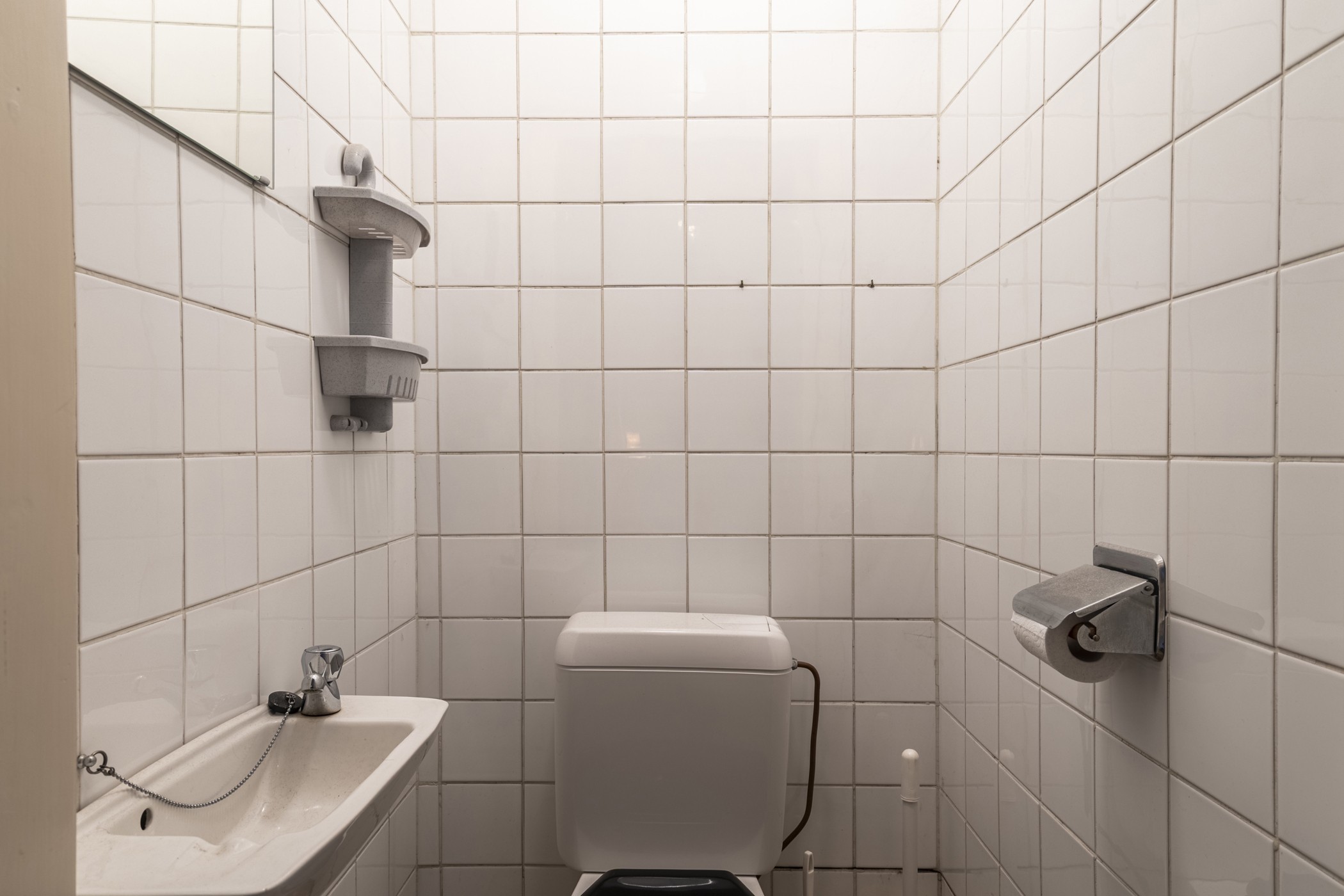 De badkamer is ruim en werd ook al vernieuwd, deze is ingericht met maatwerk wastafel, douche en toilet.