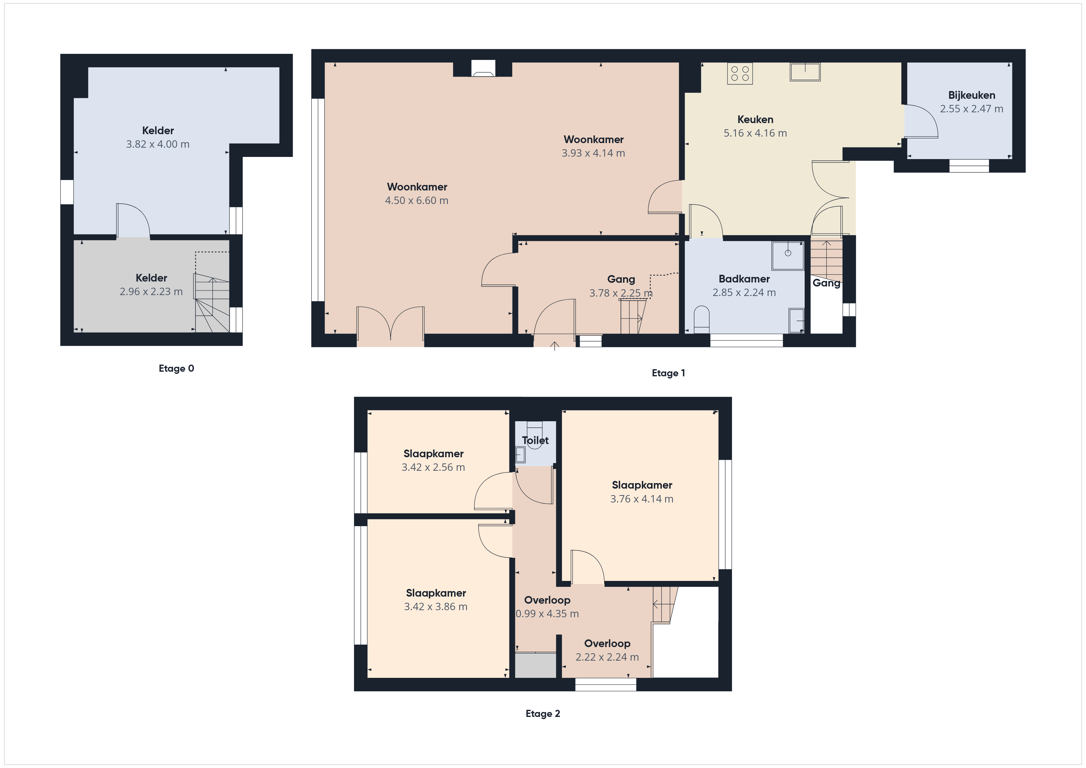 De master heeft zicht op de achtertuin en vooraan hebben we een grote en kleinere slaapkamer. Er is een apart toilet op de gang.