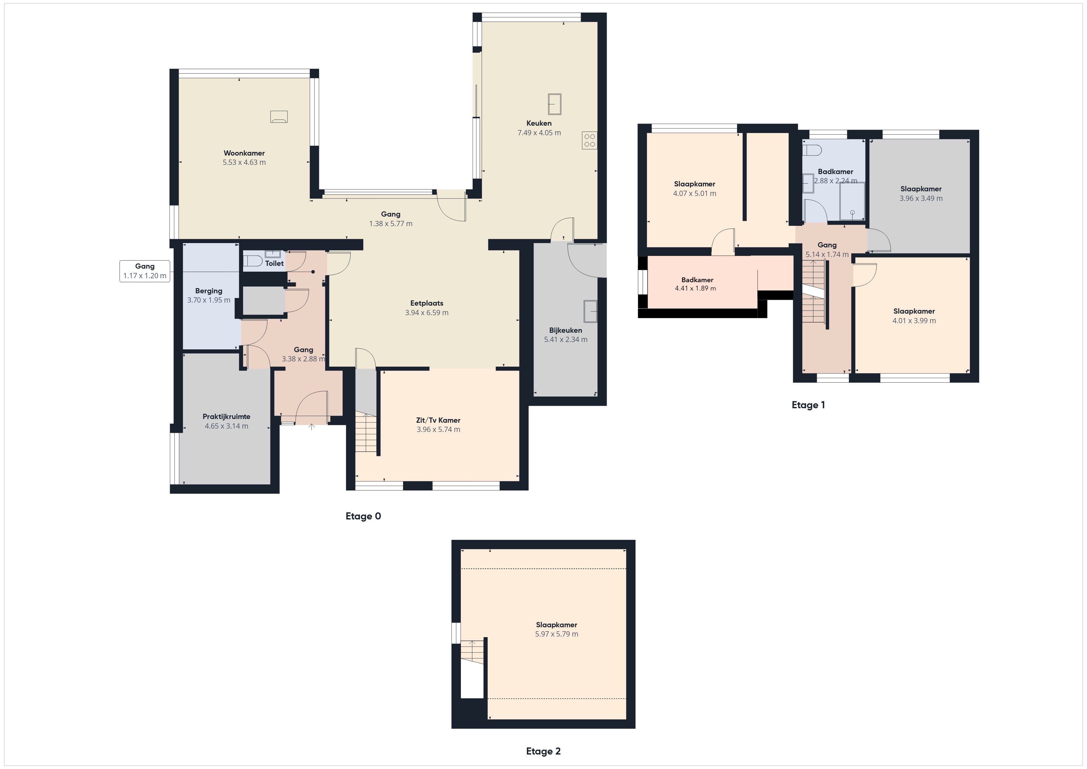 Bovenverdiep - tweede en derde niveau