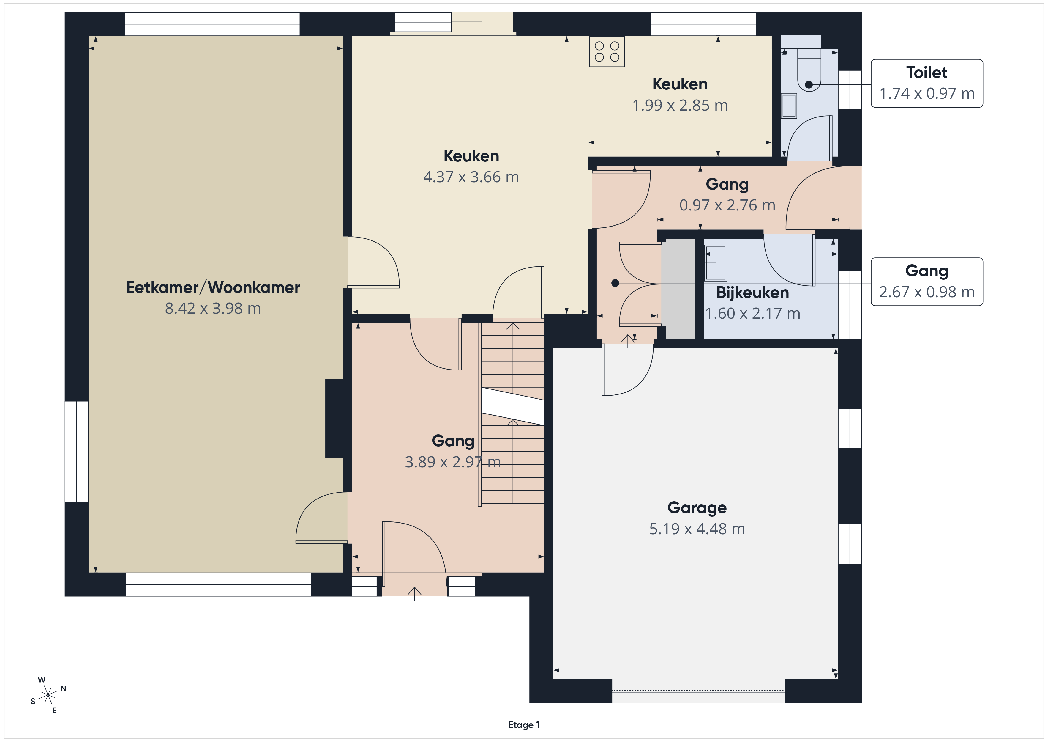 Via de gang is tevens een wasplaats/berging en de inpandige garage met automatische poort te bereiken.