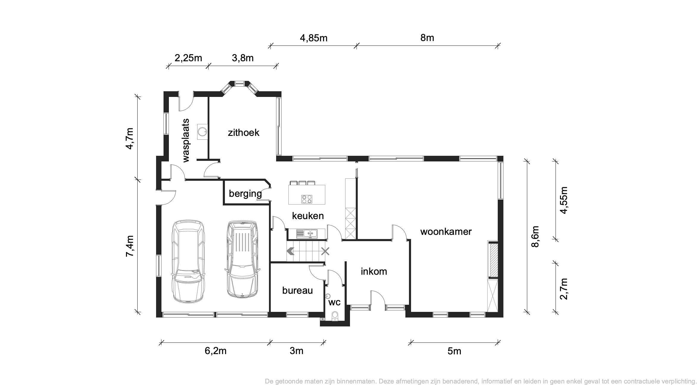 - Een dubbel inpandige garage met deur naar de tuin