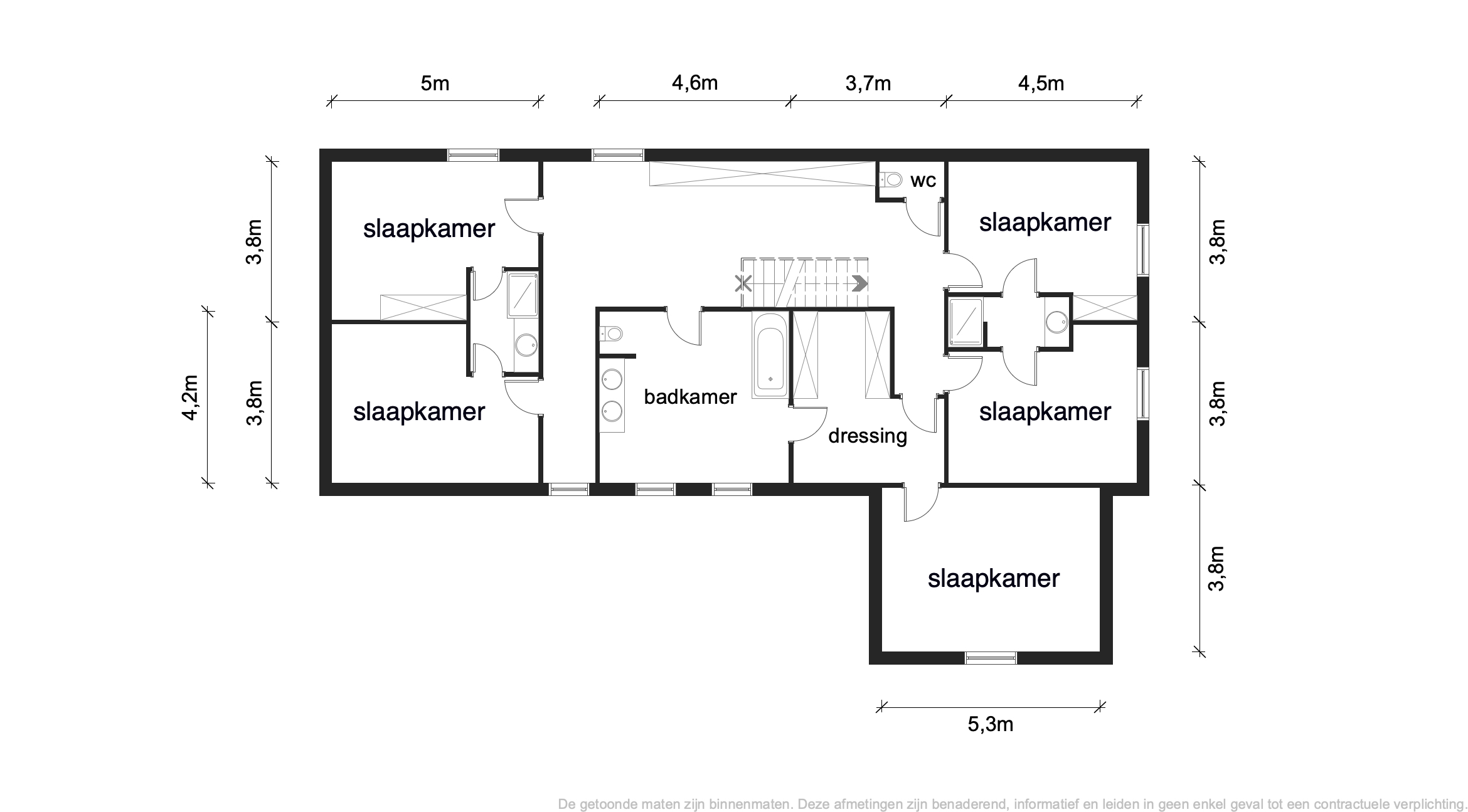 - Een royale nachthal op parket met ingemaakte kasten en nachttoilet