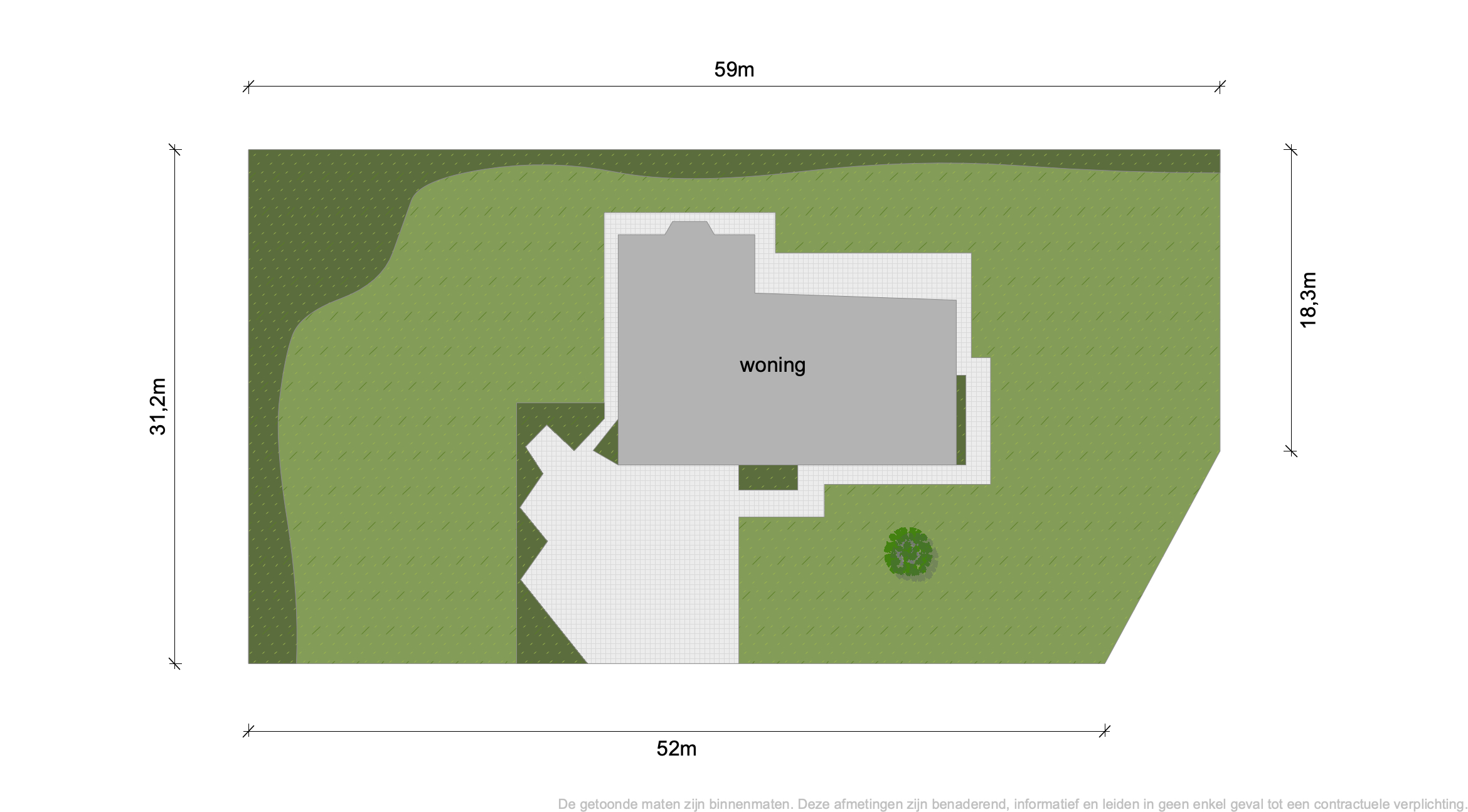 - Een omheinde, besloten tuin, westgeoriënteerd met mooie frontbreedte (ca. 63,32 meter)