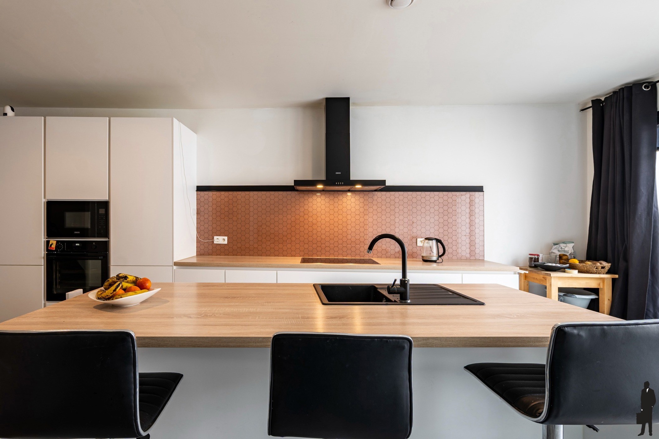 Buitengebeuren: Vanuit de keuken loopt u zo de tuin in. De grote raampartij tussen de keuken en de tuin kan bovendien volledig opengeplooid worden, waardoor binnen en buiten naadloos in elkaar overlopen en u optimaal kan genieten van het terras en de tuin. Buiten geniet u van een gezellige stadstuin, ideaal georiënteerd op het zuidwesten, waardoor u optimaal kan genieten van de zon. Achteraan de tuin bevindt zich bovendien een gezellig overdekt terras. Verder is er een luifel voorzien die desgewenst schaduw biedt op de warmste momenten van de dag.