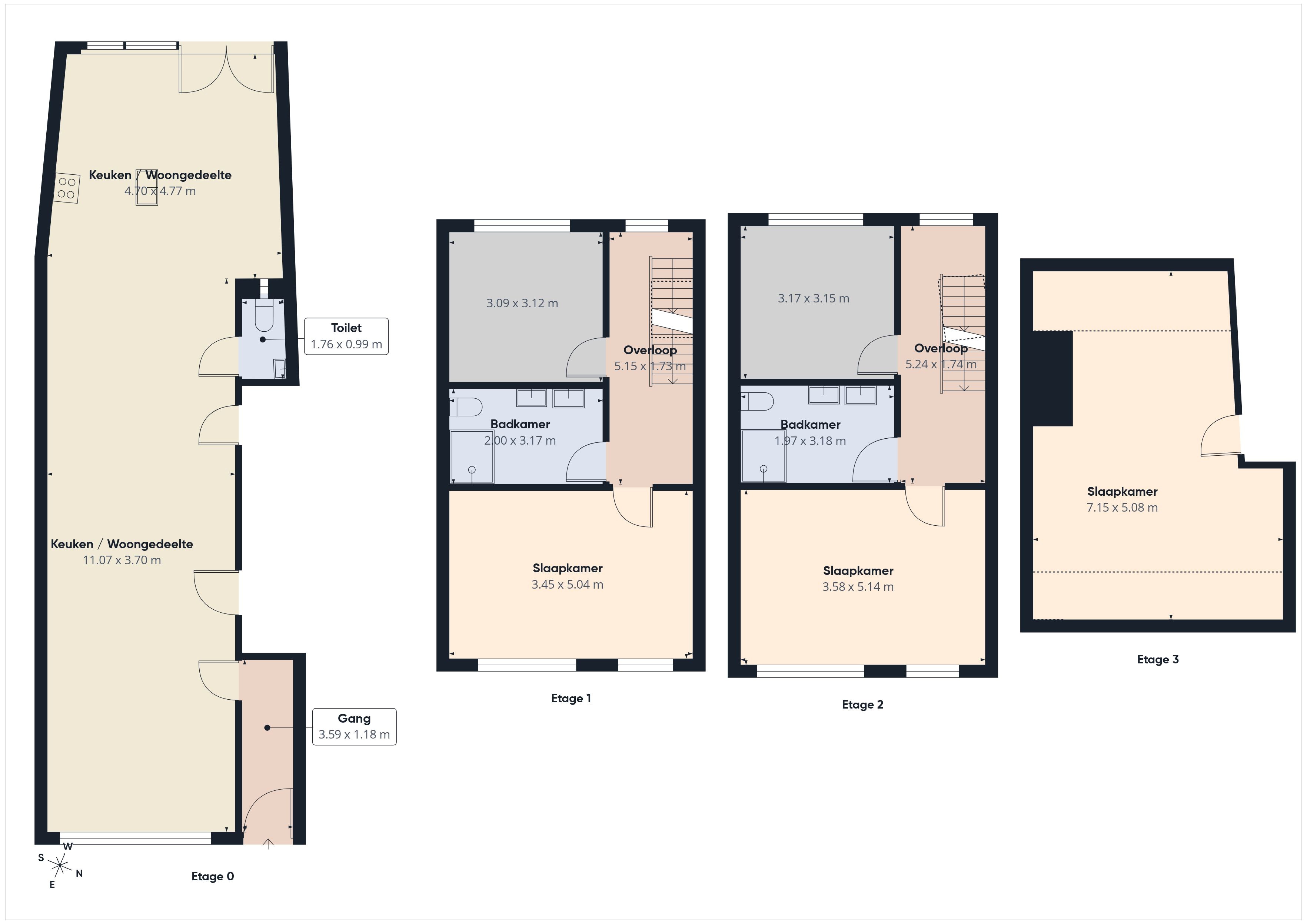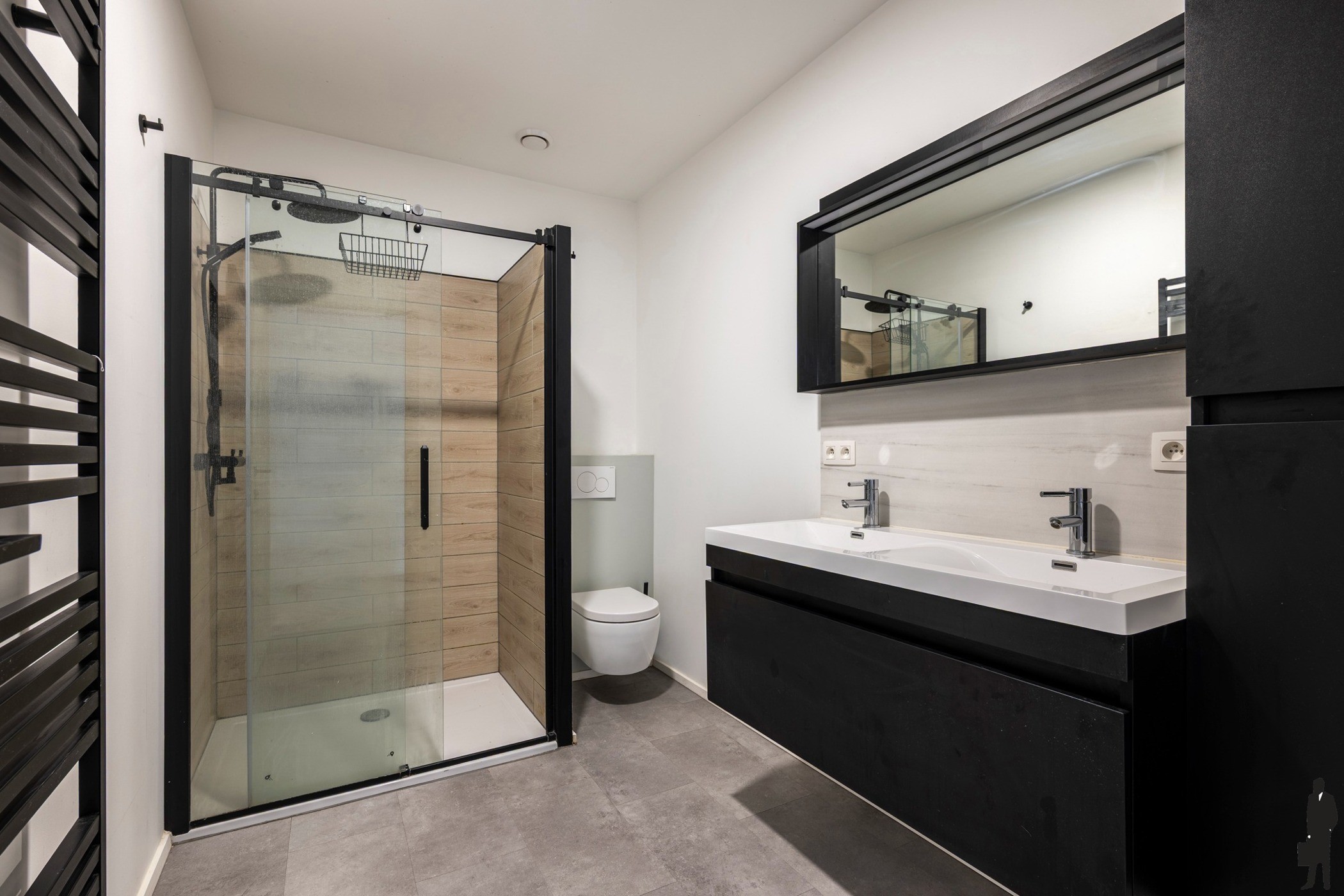 Tweede verdieping: De tweede verdieping is identiek ingedeeld aan de eerste verdieping en beschikt eveneens over twee ruime slaapkamers en een badkamer met inloopdouche, toilet en dubbele wastafel.