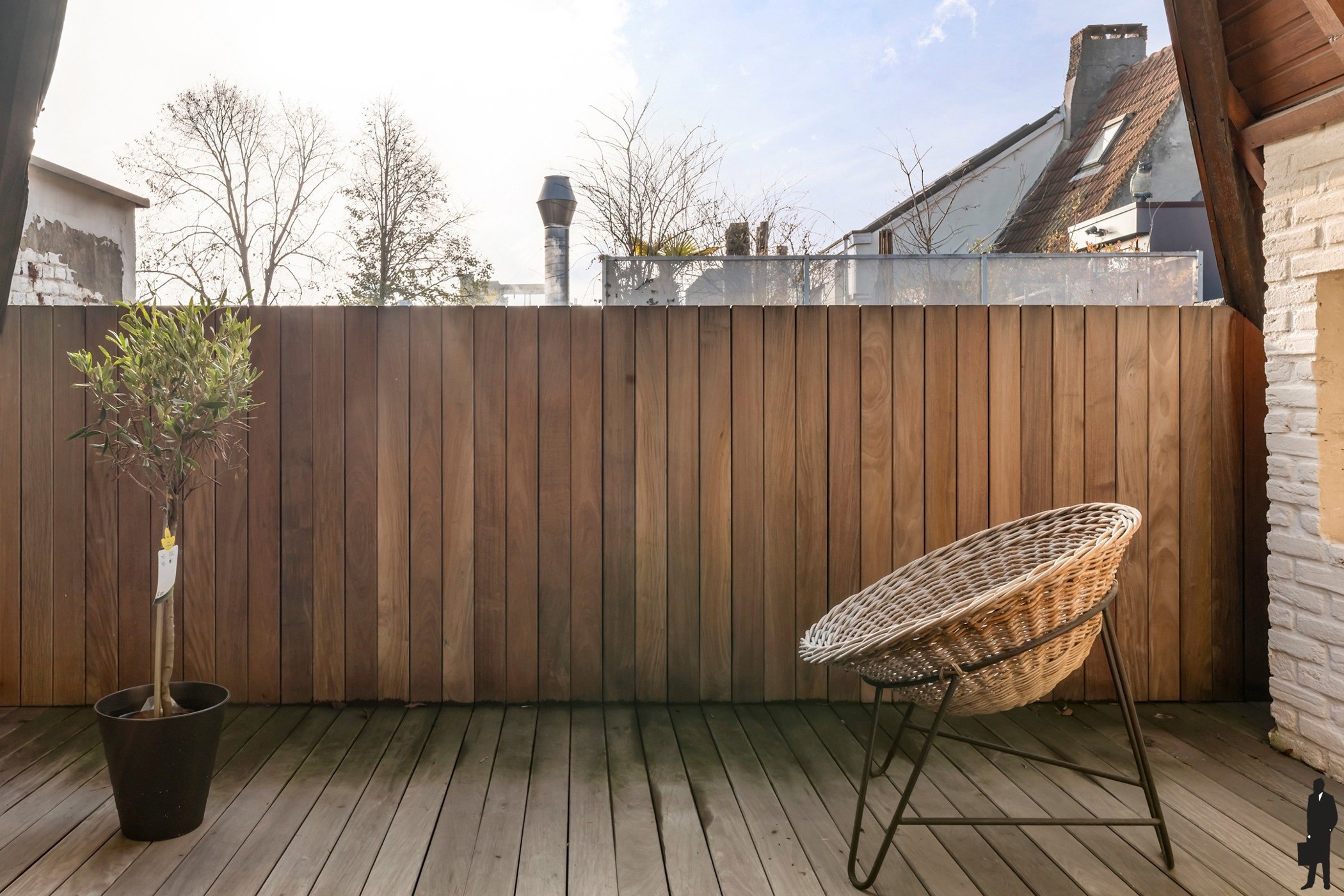 In 2024 werd de woning volledig en met grote zorg gerenoveerd in samenwerking met Maison Osaïn. Het resultaat is een perfecte symbiose van authenticiteit en hedendaags comfort. Het karakter van het 19de-eeuwse pand werd zorgvuldig hersteld, terwijl de woning tegelijk volledig werd klaargestoomd voor de toekomst: EPC A dankzij doorgedreven isolatie in alle vloeren, ventilatiesysteem D, energiezuinige verwarming en koeling, en zelfs een kelder die werd afgewerkt met kurkvloer en ventilatie.
