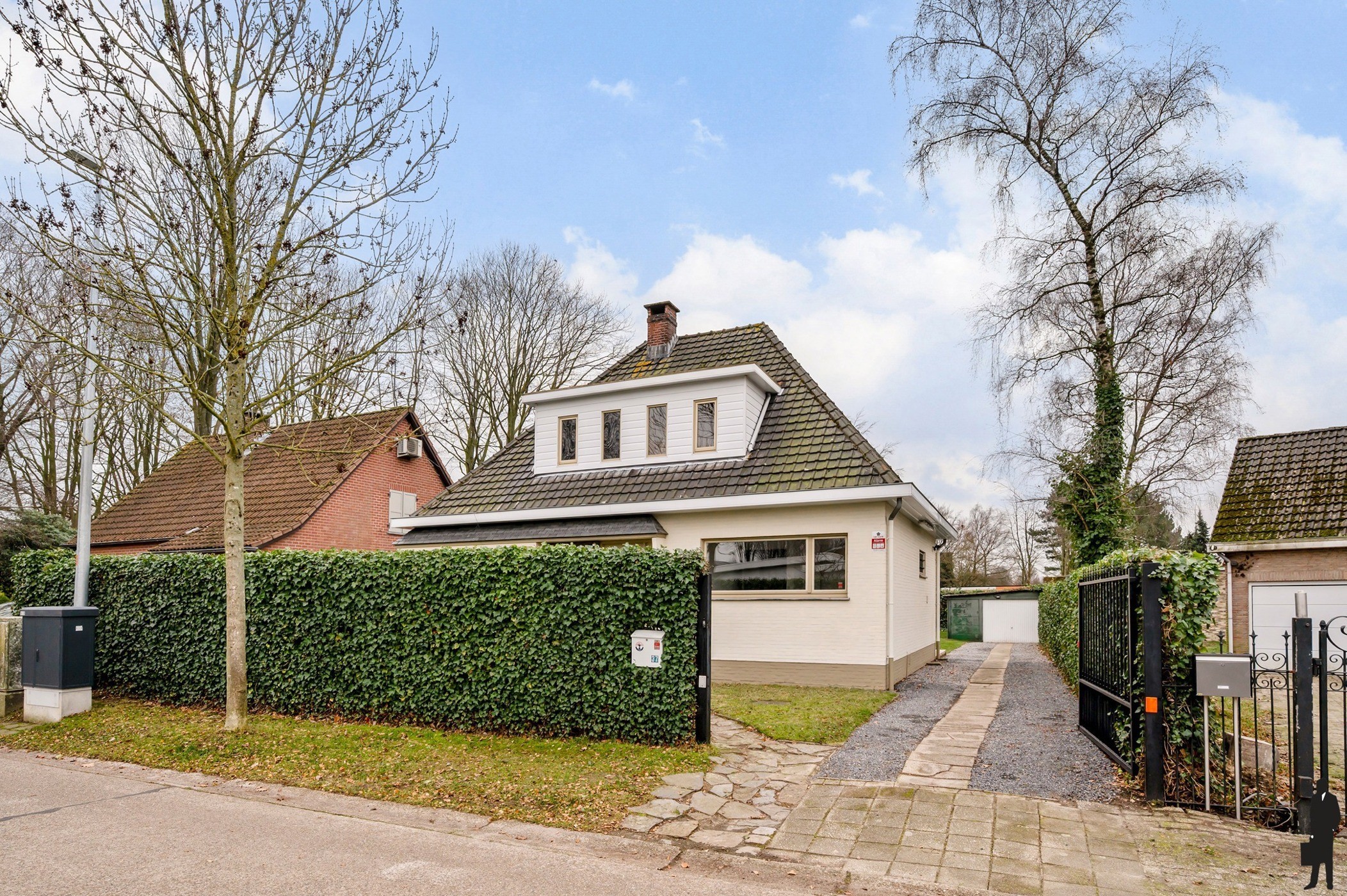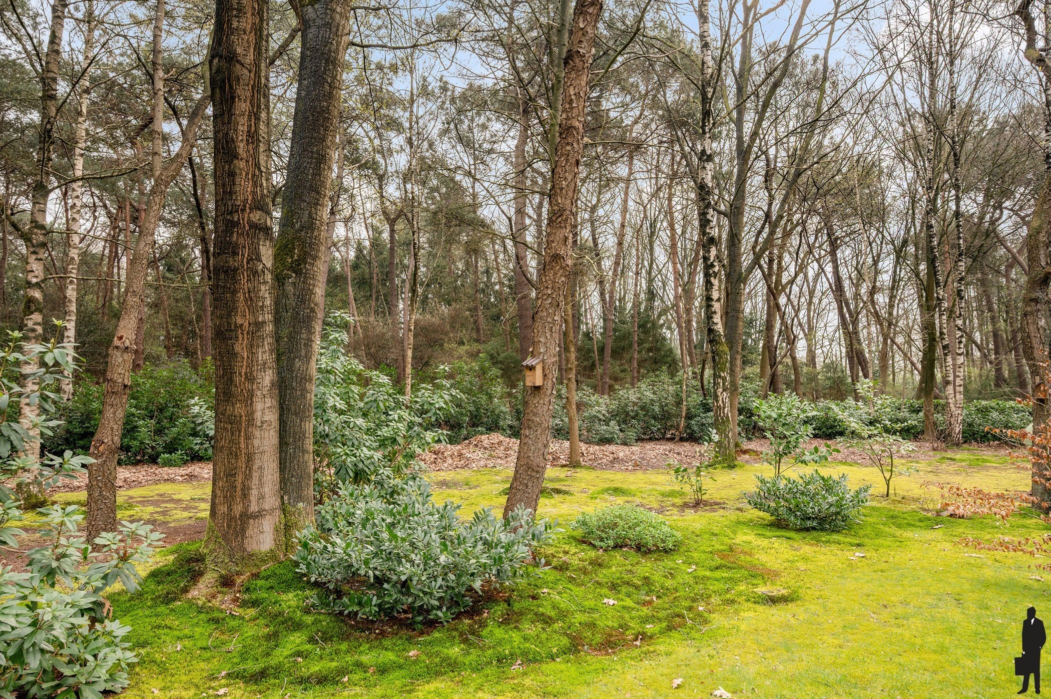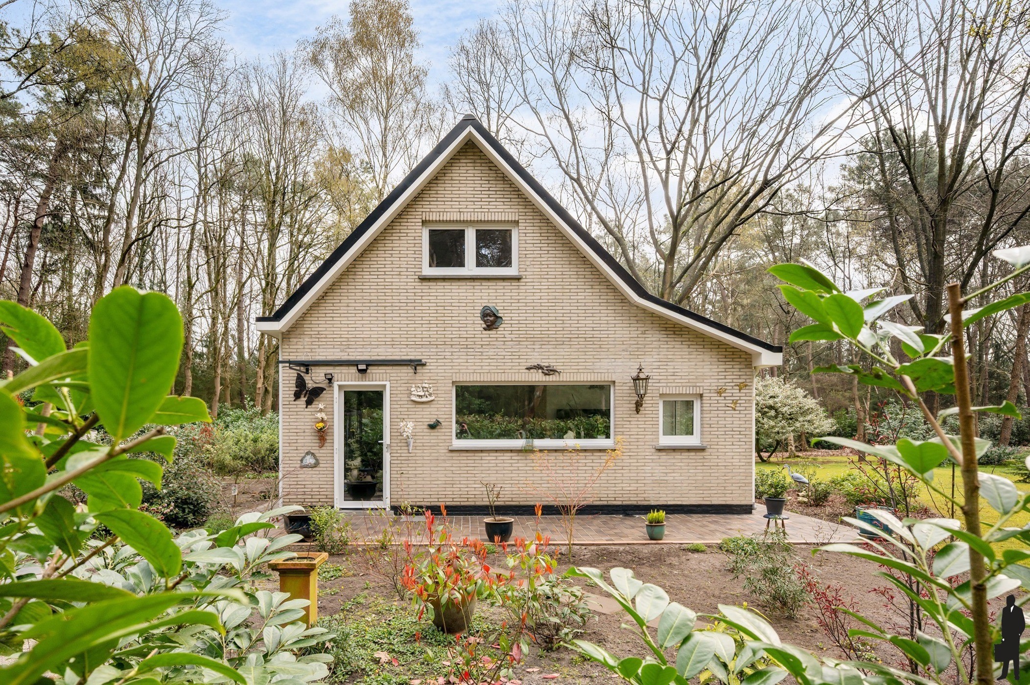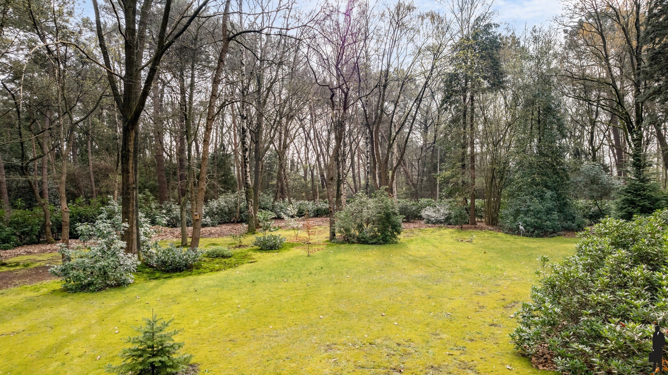 De woning is volledig omgeven door een uitgestrekte, groene tuin met volwassen bomen en natuurlijke beplanting. Hier geniet u in alle rust van de seizoenen, het gezang van vogels en een ongeëvenaarde privacy.